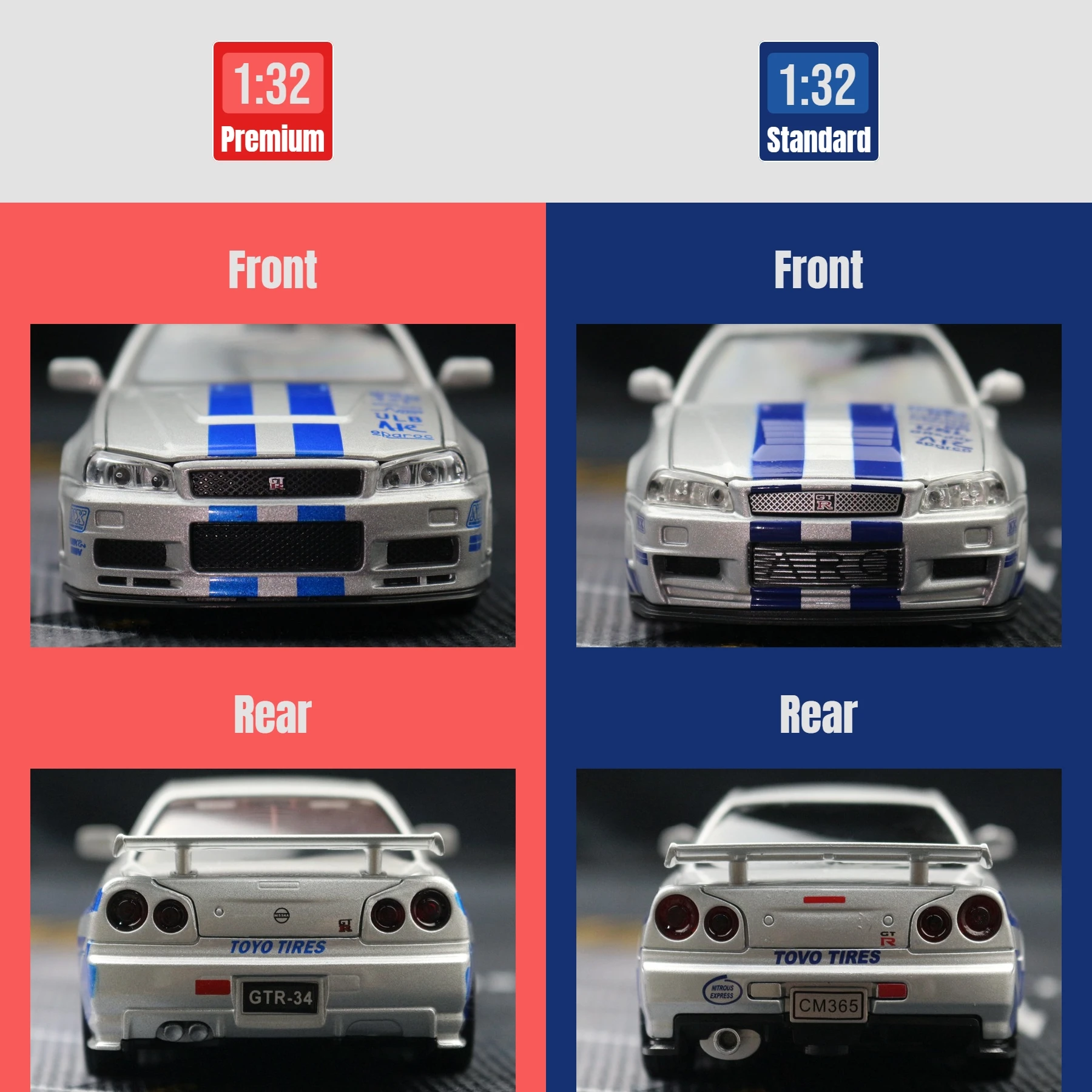 1/32 Nissan Skyline GTR R34 JDM Toy Car Model Diecast Vehicle Miniature Sound & Light Pull Back Collection Gift Children Boy