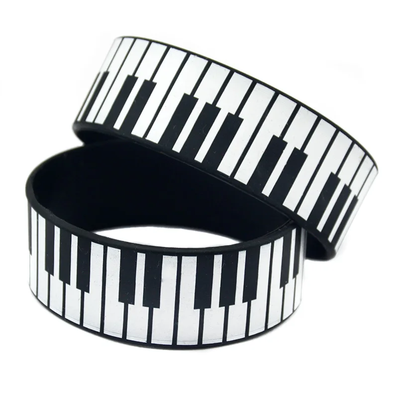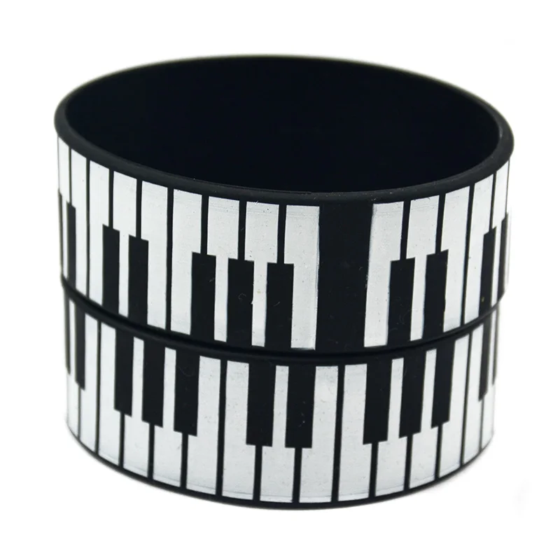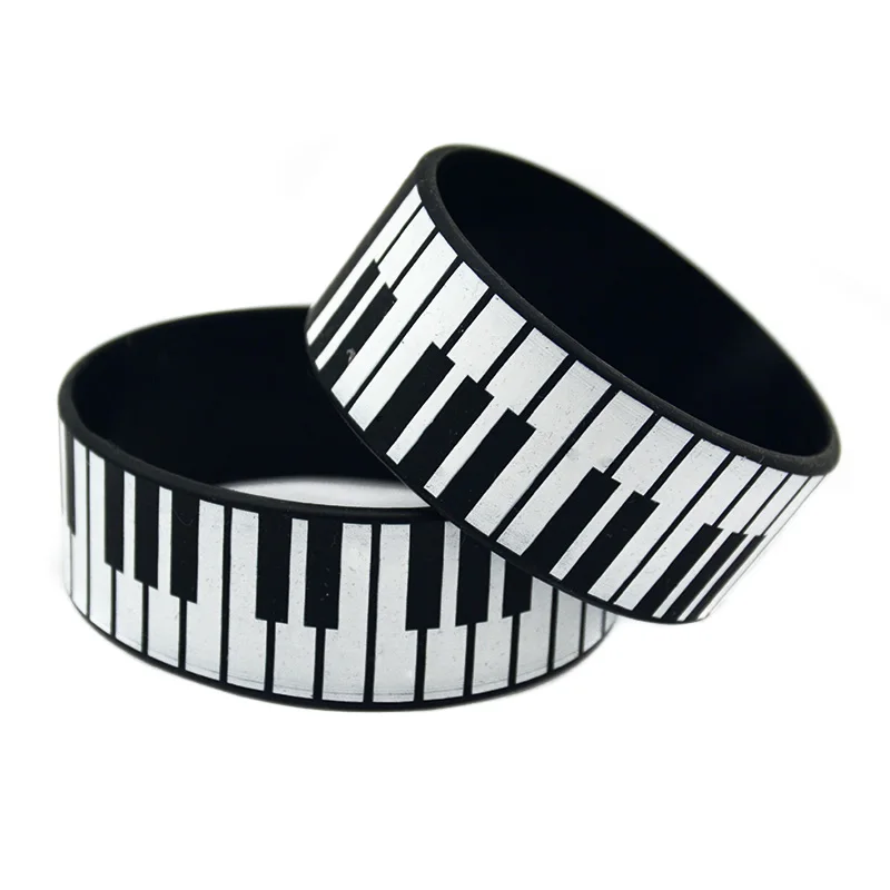 1 PC Piano Keys Silicone Bracelet 1 Inch Wide Printed Logo