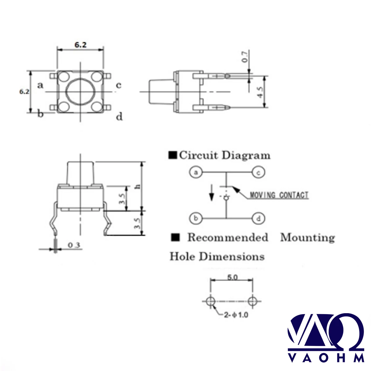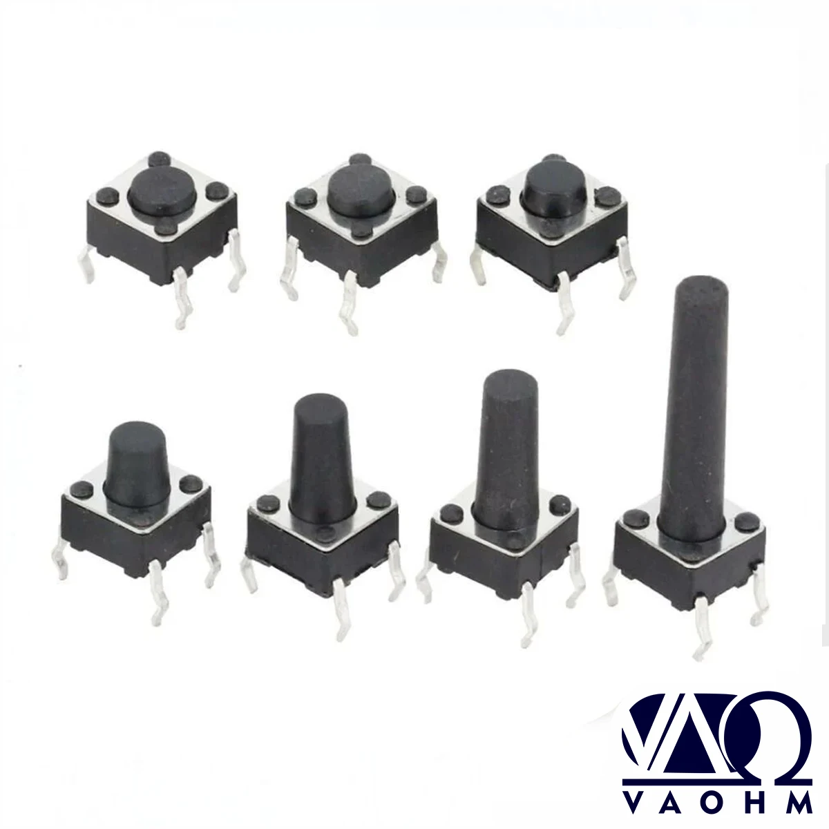 100PCS 6*6 Tact Switch Through Hole 6x6x4.3 6x6x4.5 6x6x5 6x6x6.5 6x6x7 6x6x7.5 6x6x6x6 8 6x6x8.5 6x6x9 6×10 6x6x11 6x6x12