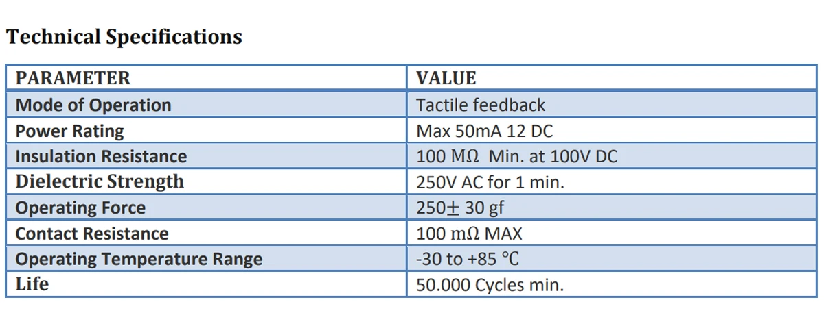 • Dielectric Withstanding Voltage 250V AC for 1 minute