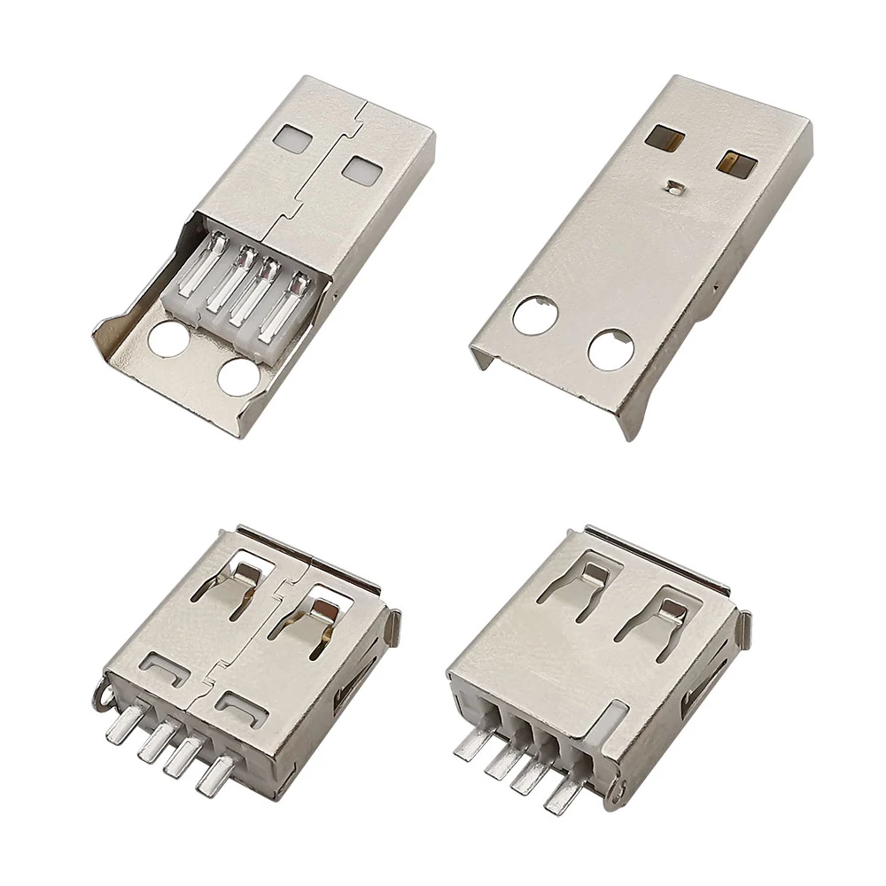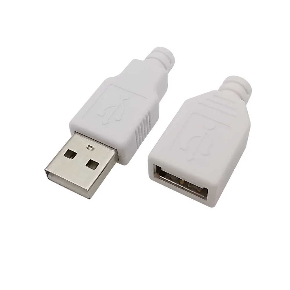 10Pcs USB Type A Connector Male Female 4 Pin Plug Socket With Black White Plastic Cover USB 2.0 Type-A Soldering DIY Kits