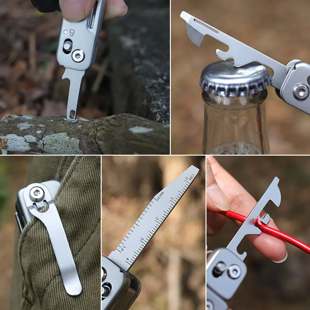【Foldable and Portable】 The multitool folding knife comes with a belt clip that can be fixed to your pocket, This small multi tools with a folded size of 93*23*19mm and a weight of 135g, mini size and lightweight, comfortable to carry in your pocket, hung on belt loops or backpacks. Meet the various needs of daily use, such as cutting, screwing, twisting, easy to open bottles, etc.