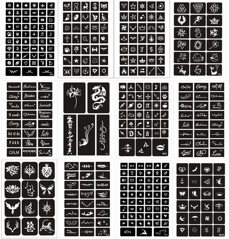 150pcs tattoo stencil album airbrush henna drawing template hollowed out inkjet small cute flower animal letter carton pattern