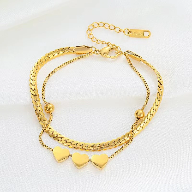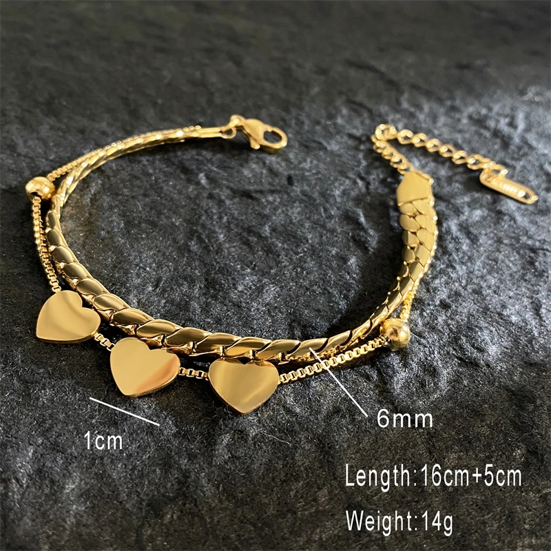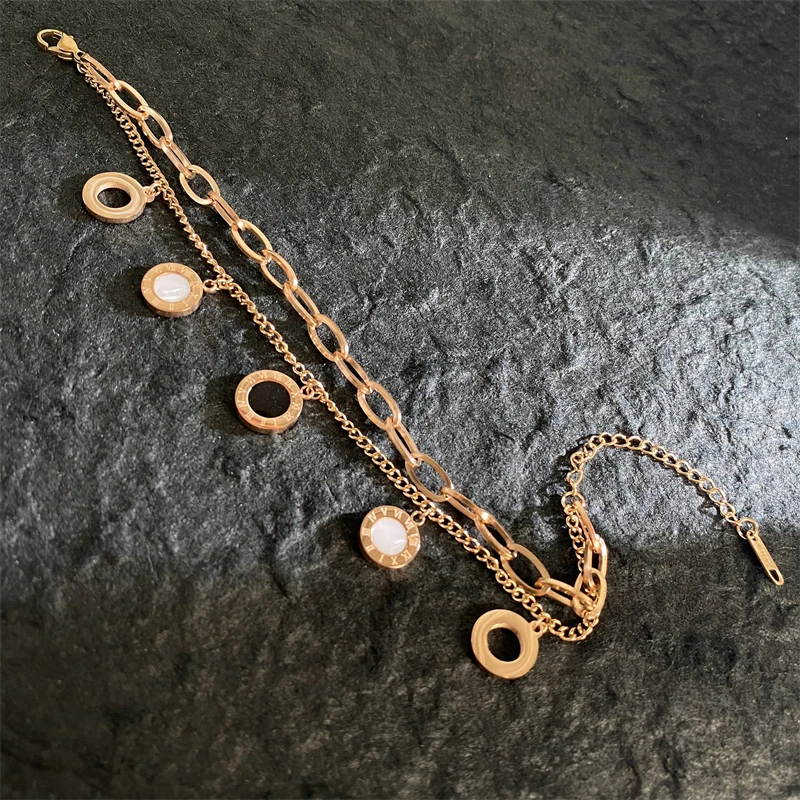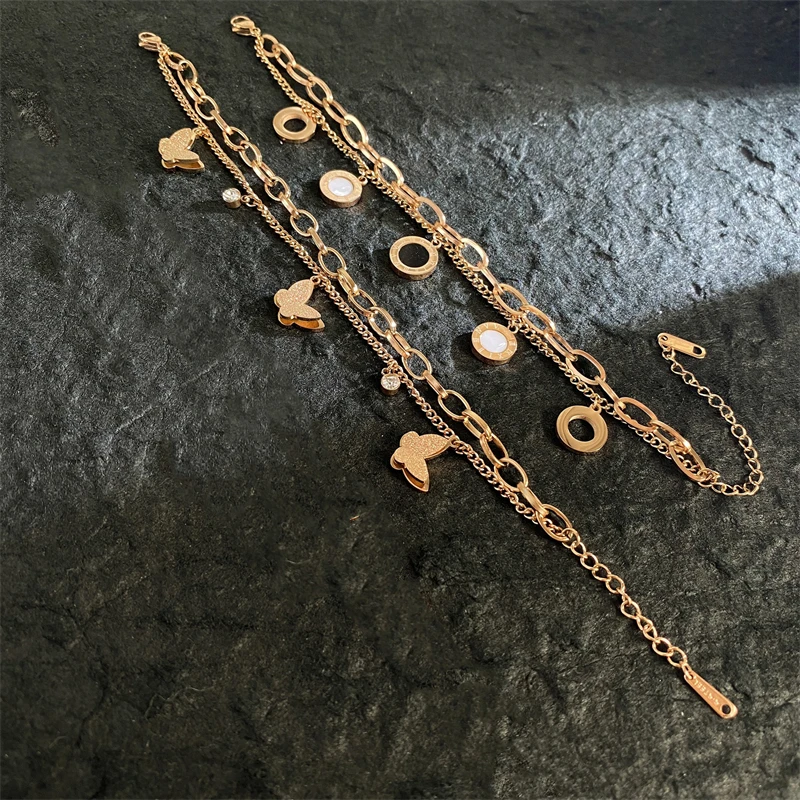 18K Gold-plated Stainless Steel Bracelets for Women Luxury Brand Quality Double Layered Round Pendant Bracelet Butterfly Jewelry