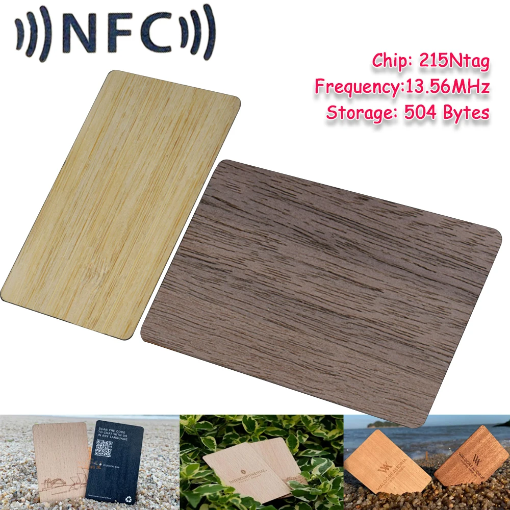 1Pc Wooden Card NFC 13.56MHZ RFID Tag 504Bytes 215Ntag Chip Membership Contactless Business Gift Social Recognition Lasercard