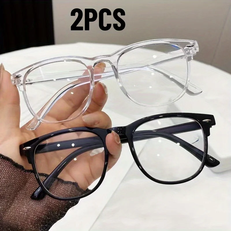 1Pcs/ 2Pcs Men Women Anti Blue Light Glasses Square Transparent Glasses Women PC Frame Daily Commuting Computer Glasses