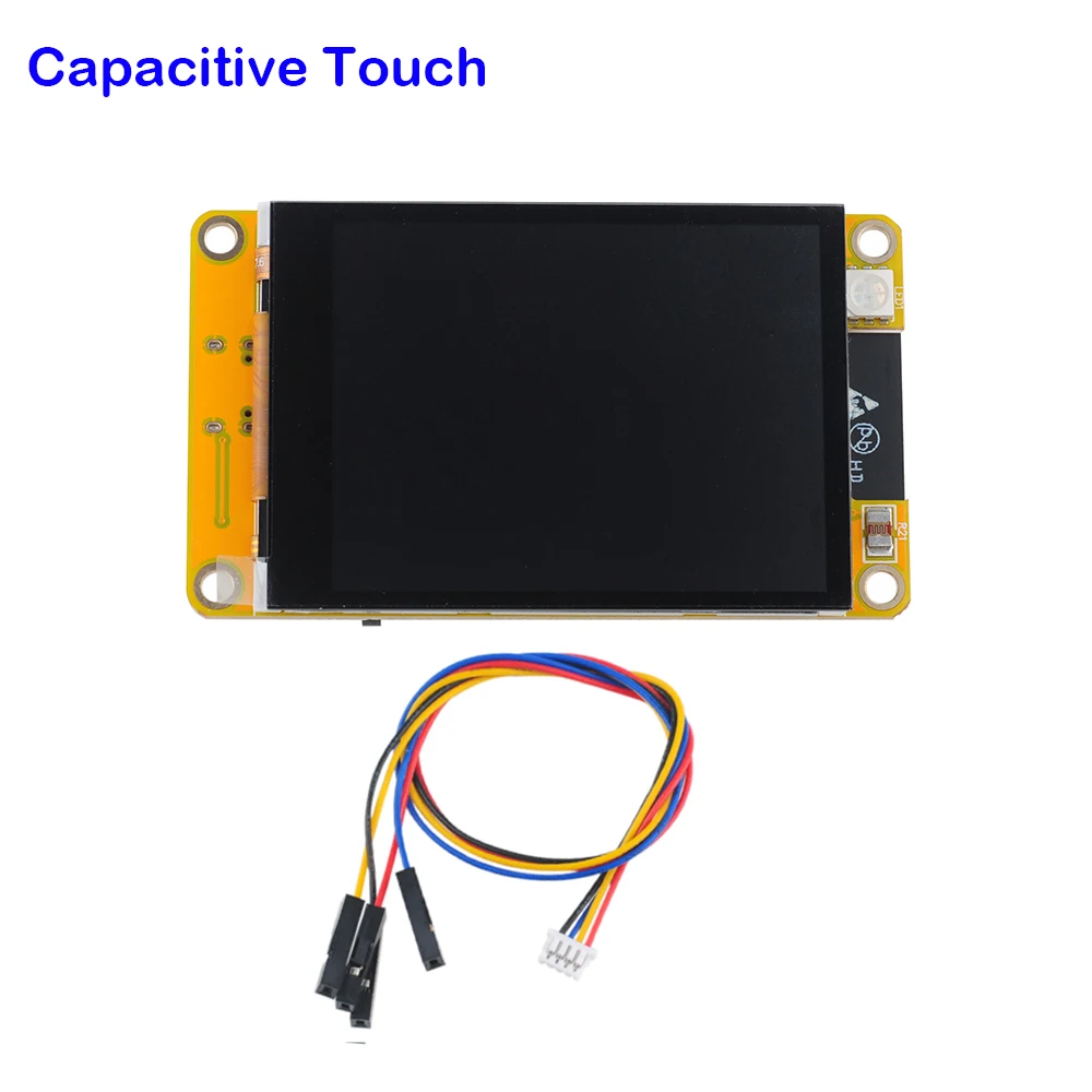 This LCD module uses ESP32-WROOM-32 module as the main control, the main control is a dual-core MCU, integrated WI-FI and Blue-tooth functions, the main frequency can reach 240MHz, 520KB SRAM, 448KB ROM, Flash size is 4MB, The display resolution is 240×320, resistive touch. The module includes LCD display screen, backlight control circuit, touch screen control circuit, speaker drive circuit, photosensitive circuit and RGB-LED control circuit. TF card interface, serial interface, temperature and humidity sensor interface (DHT11 interface) and reserved IO port interface, this module supports development in arduino-IDE, ESP IDE, Micropython-and-Mixly.