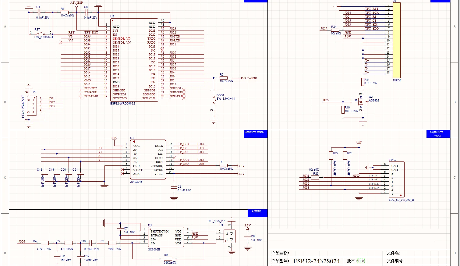 | Model | without touch:ESP32-2432S024N Resistive touch:ESP32-2432S024R Capacitive touch:ESP32-2432S024C |