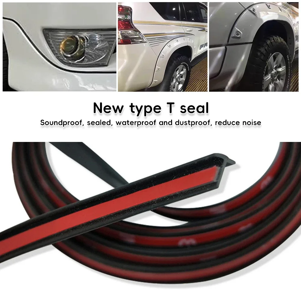 2/5M Car Rubber Seal Strip for Fender Flare Arch Small Slanted T-Type Seal Edge Gap Strips Waterproof Soundproof Protection