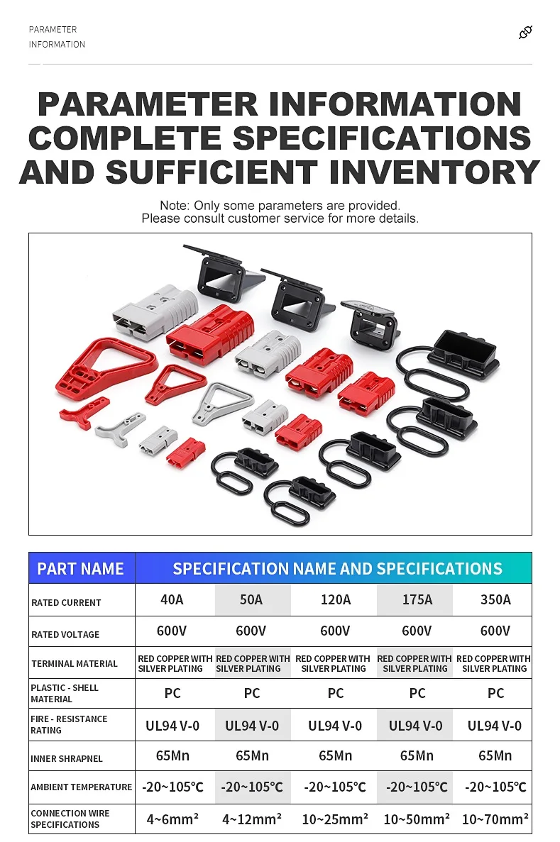 Connection Wire Specifications: 50A (4~12mm²) ; 120A (10~25mm²) ; 175A (10~50mm²) ;