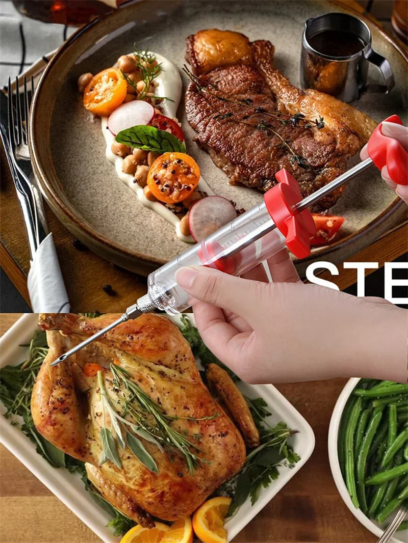 30ml Food Grade PP Stainless Steel Needles Spice Syringe Set BBQ Meat Flavor Injector Kithen Sauce Marinade Syringe Accessory