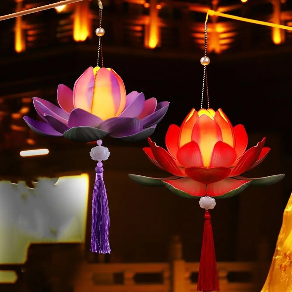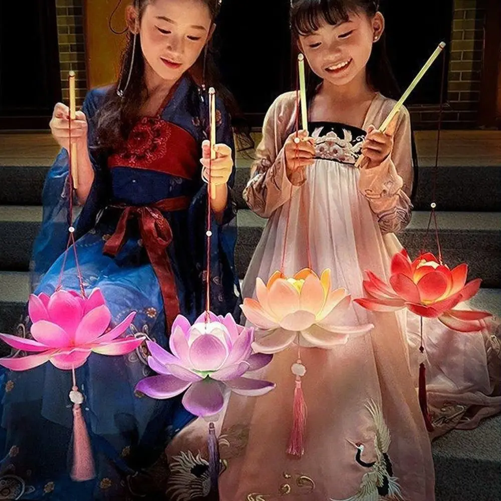 3D Middle Autumn Festival Lantern Lotus Flower Rabbit DIY Lantern Material Kit Paper Luminous Mid Autumn Lotus Lantern Children