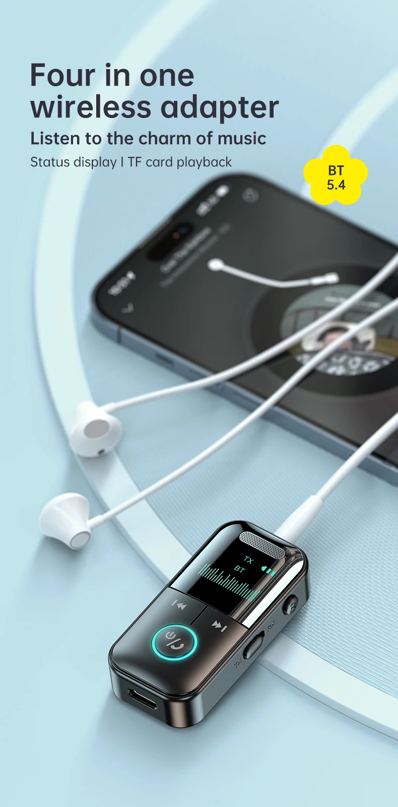 4 IN 1 Bluetooth 5.4 Audio Adapter 3.5mm Aux Wireless Music Receiver Transmitter TF Card Player with Mic For Speaker PC TV Car