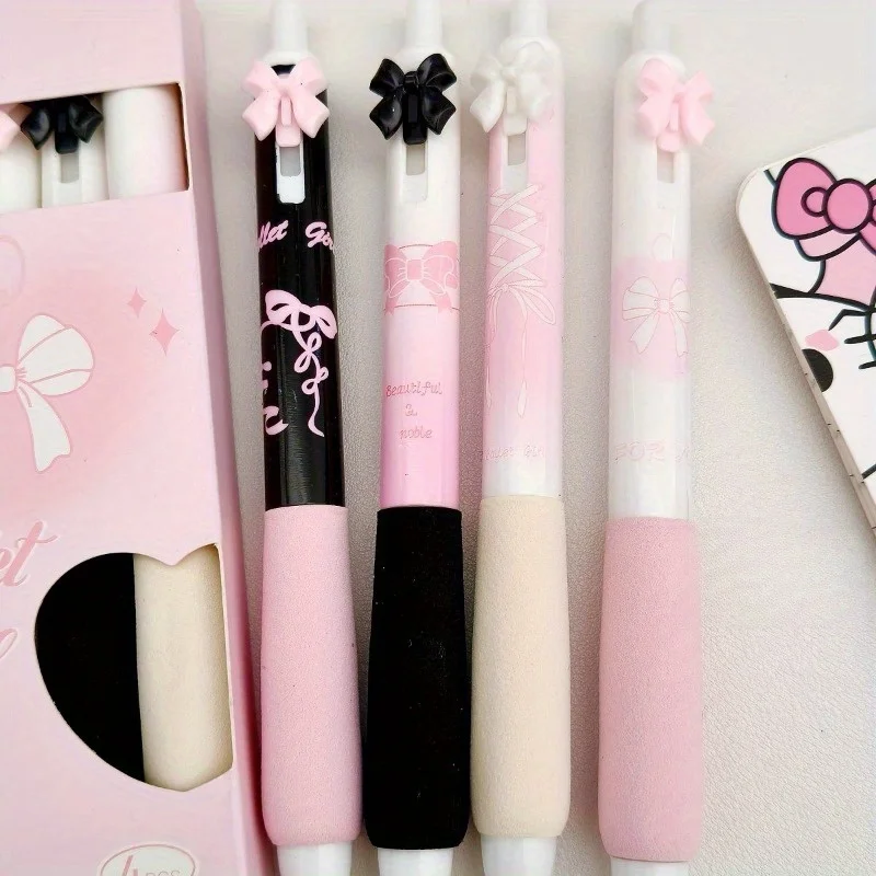 4pcs Cute Retractable Pens Cartoon Gel Soft Grip Pens, 0.5mm Black Office School Supplies