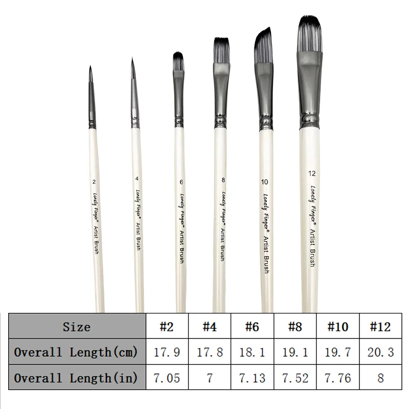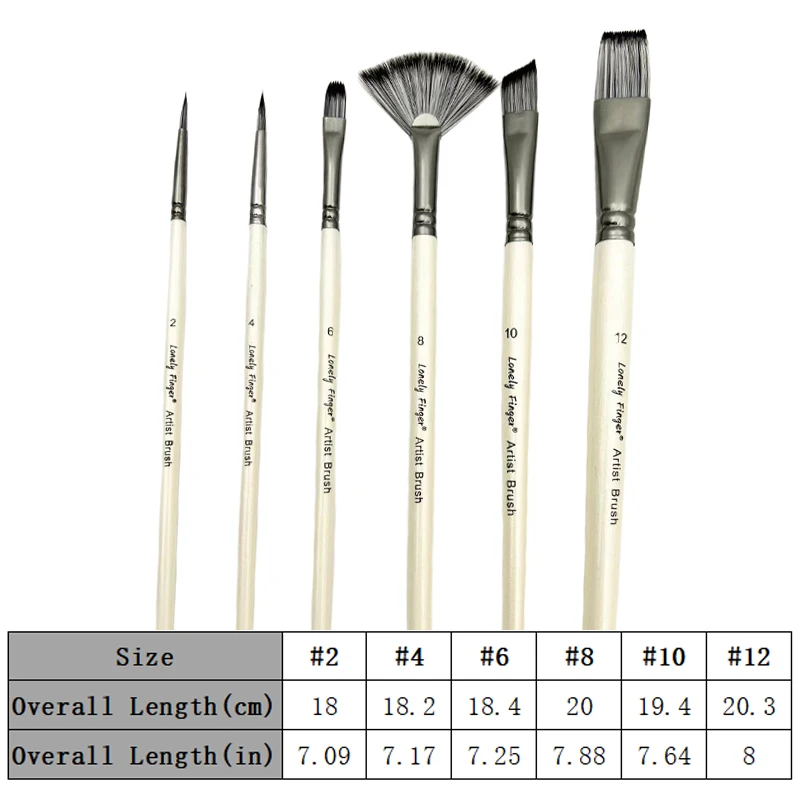 6/12pcs Acrylic Paint Brushes Set for Acrylic Oil Watercolor Gouache Artist Professional Painting Kits with Synthetic Nylon Tips