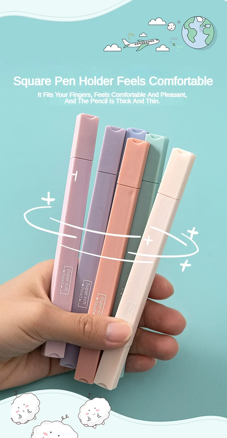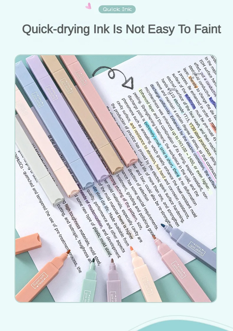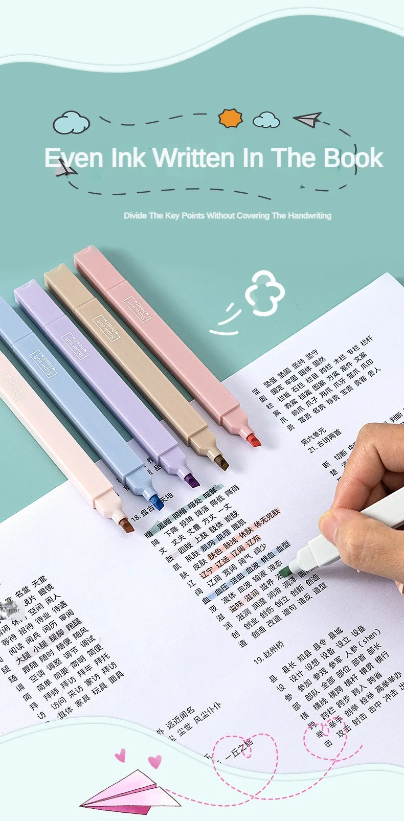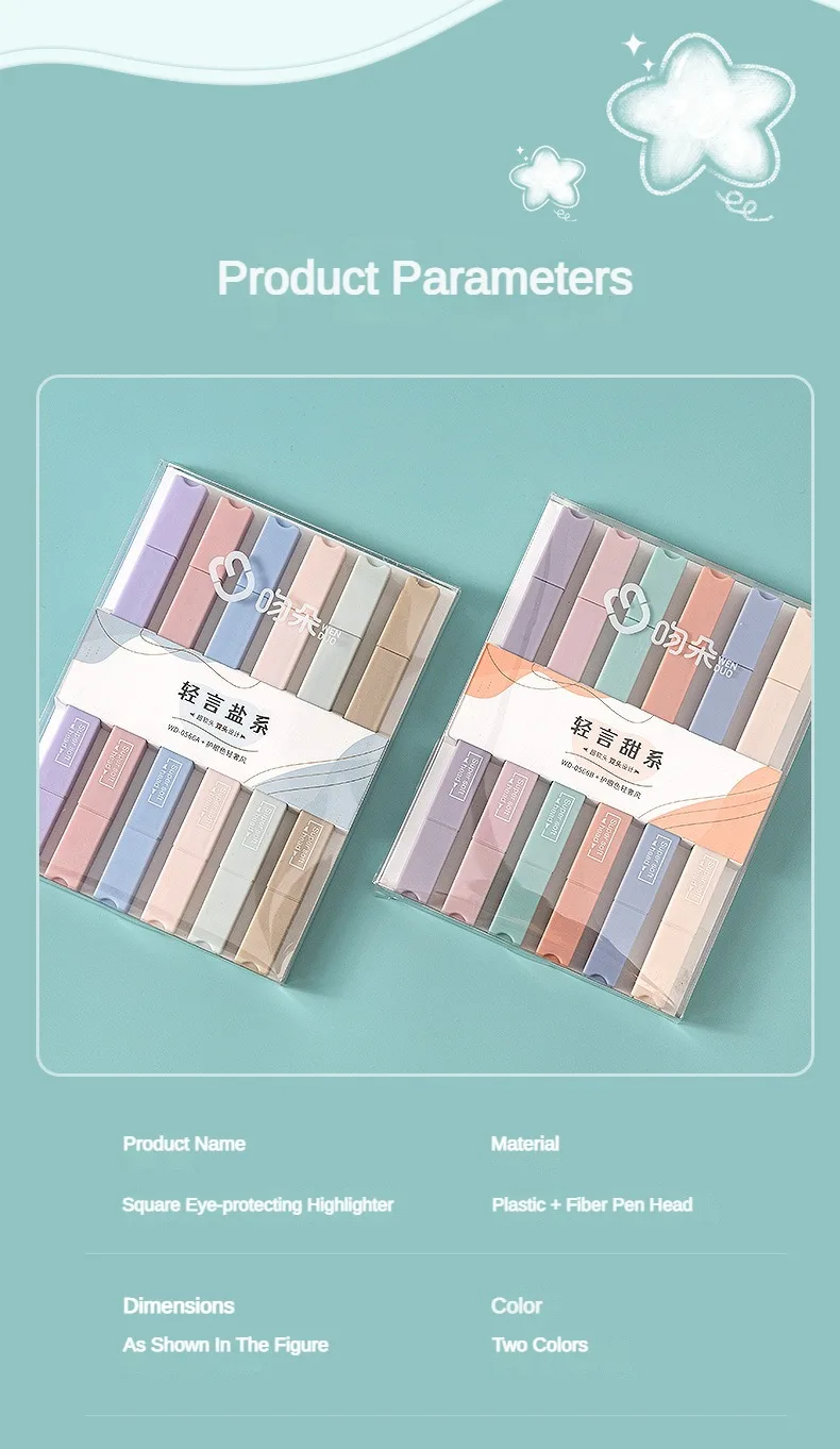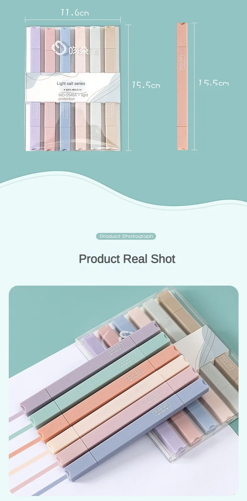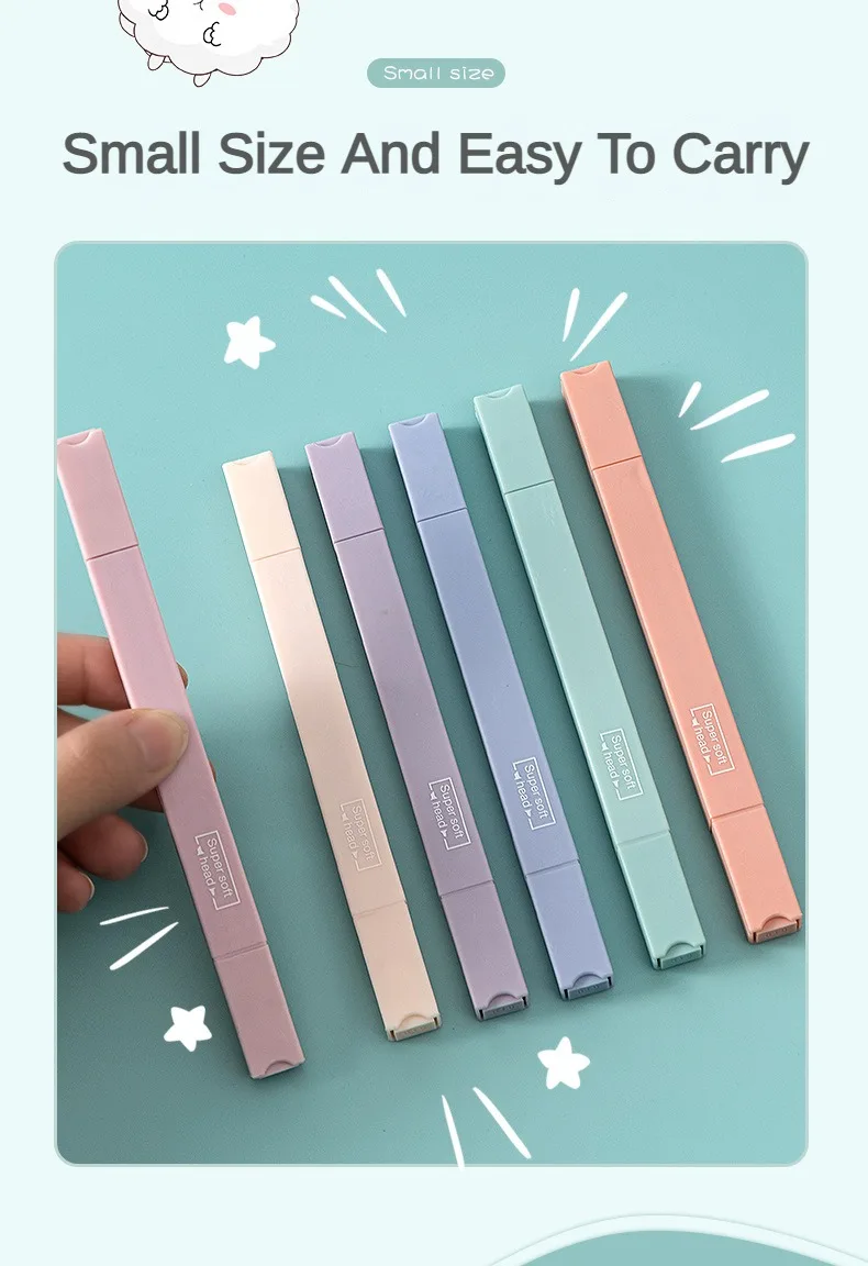 6 Pcs/Set Double Tip Highlighter Pens Kawaii Manga Markers Midliner Pastel Gel Journal Pens Stationery Office School Supplies