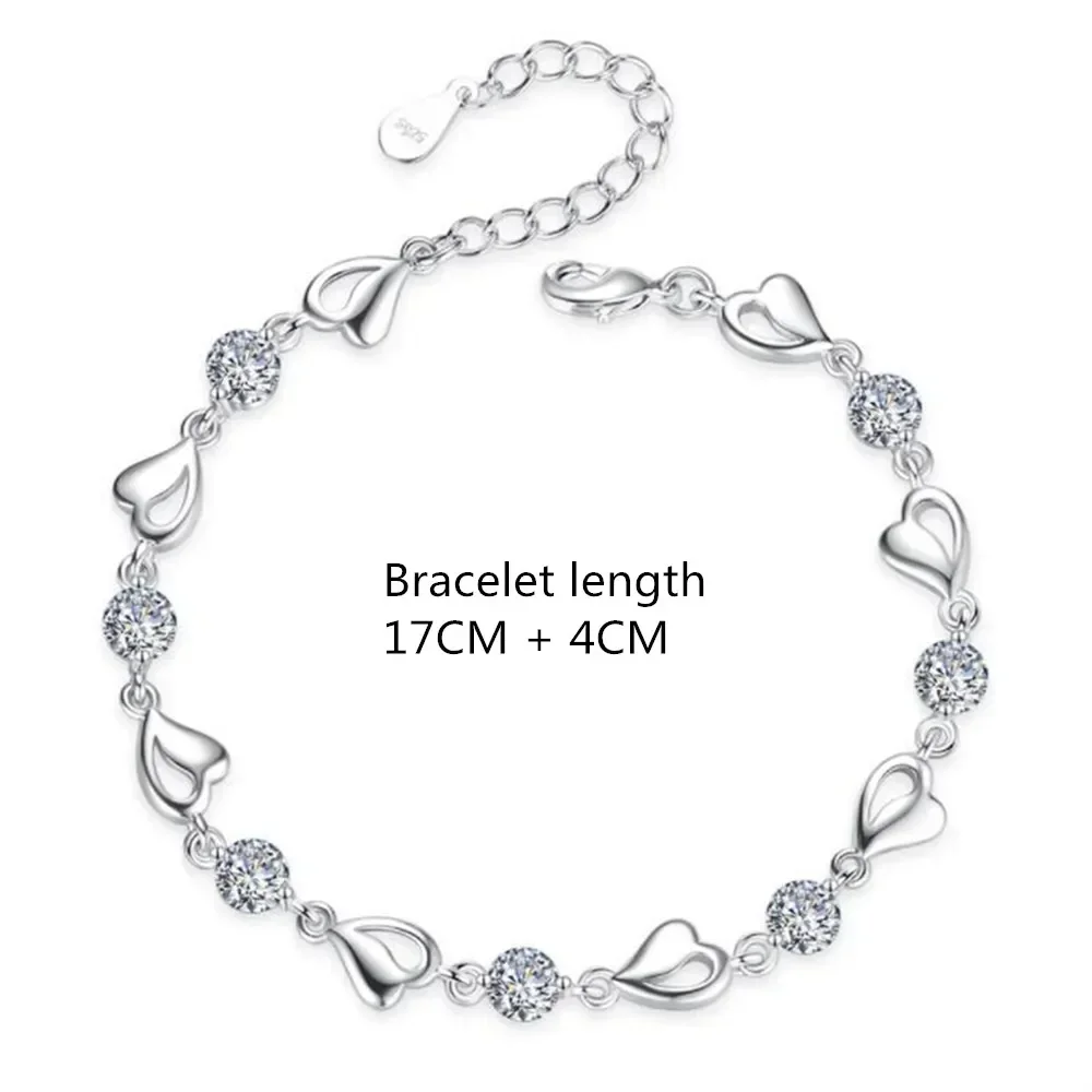 925 Sterling Silver Heart Shaped Necklace Bracelet Set for Women Vintage Korean Crystal Bracelets High Quality Set Party Jewelry