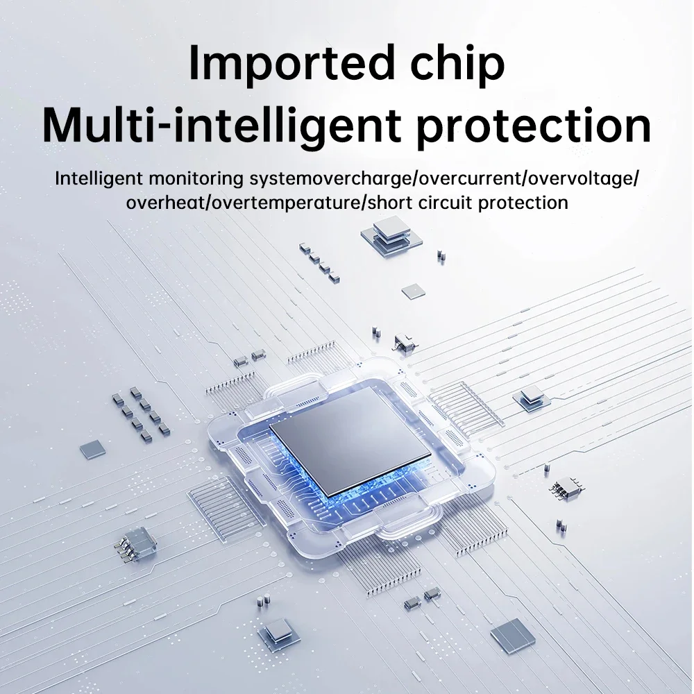3. Built-in intelligent chip automatically detects connected devices and optimizes power distribution, and also has a low power reminder function to effectively manage power usage.