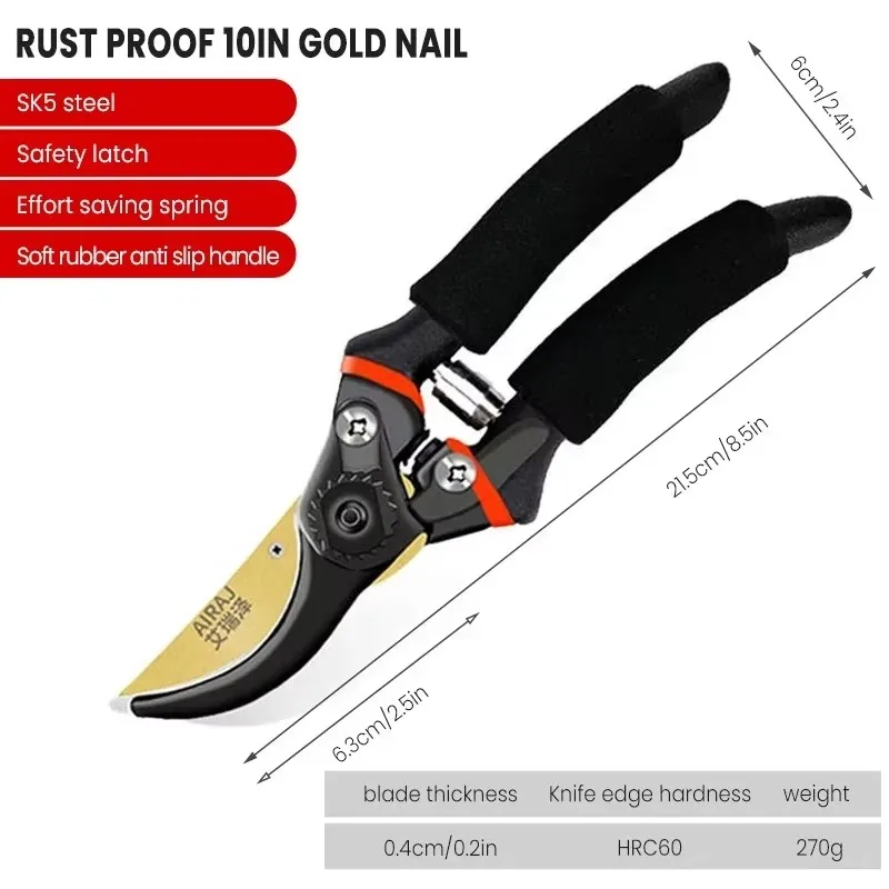 AIRAJ 1pc Multifunctional Pruning Shear Garden Tools Heavy Duty Ultra Sharp Hand Pruners, Professional Garden Scissors