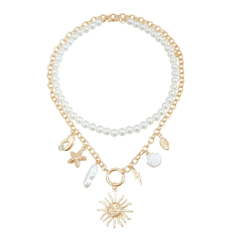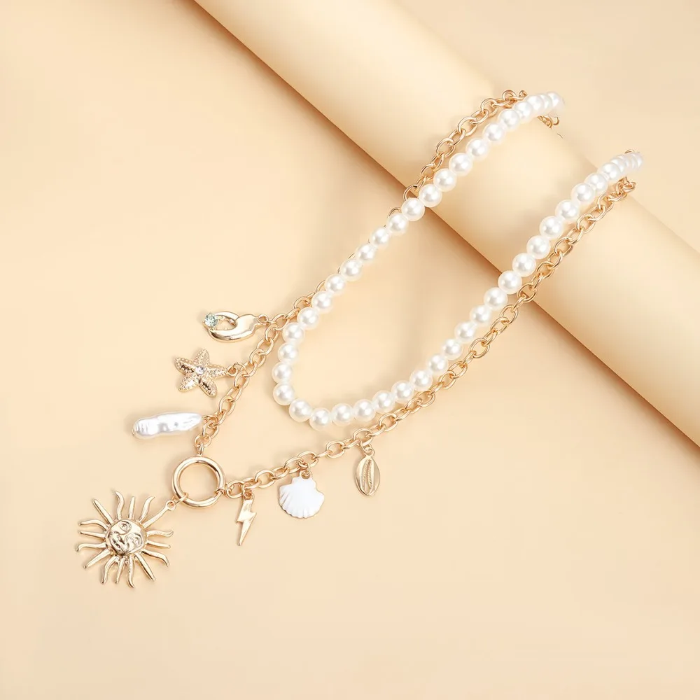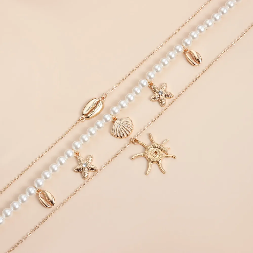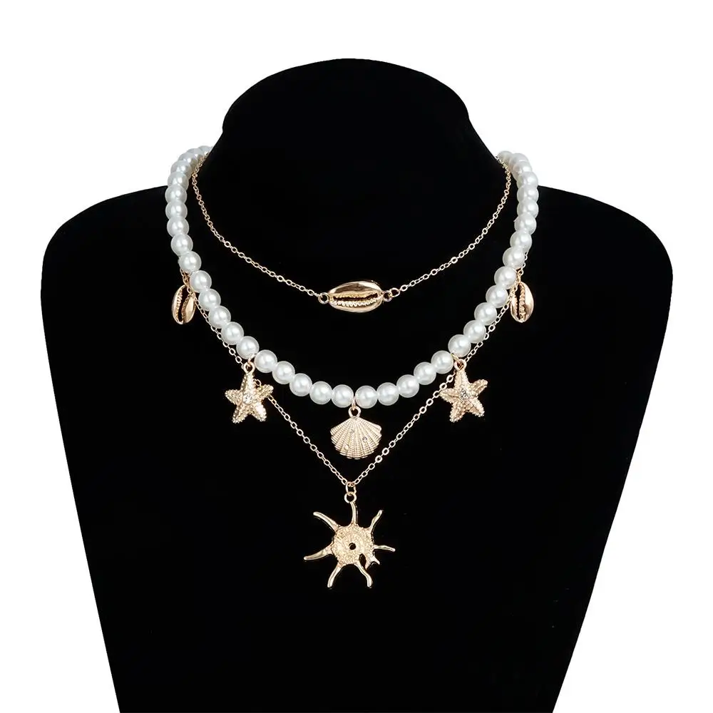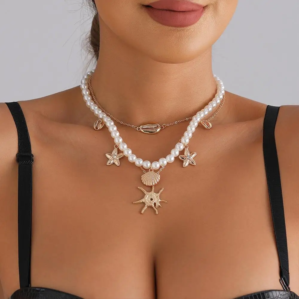 Alloy Beads Multi-layer Necklace Beach Style Holiday Travel Starfish Pendant Necklace Jewelry Gift Shell Necklace for Women
