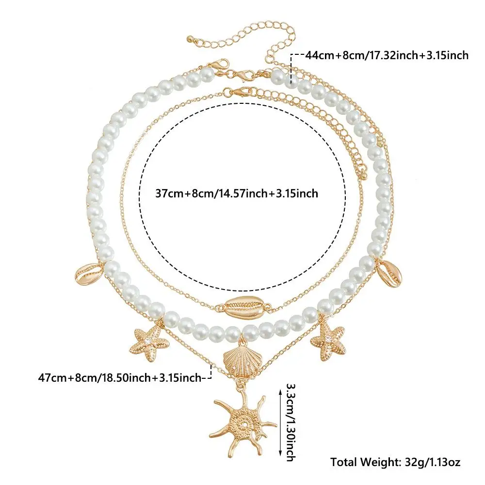 Main Features: Multi-layered Design, Starfish and Shell Pendants, Trendy Alloy Beads, Lightweight and Chic