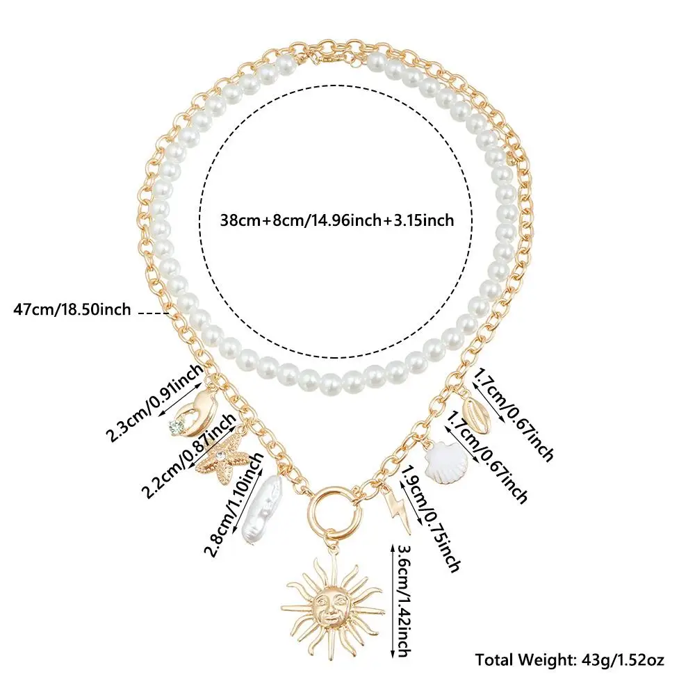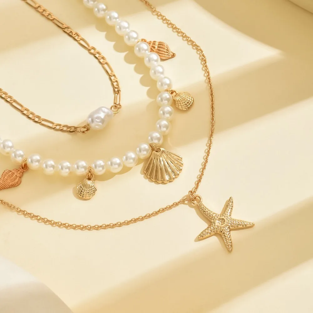 Alloy Beads Multi-layer Necklace Beach Style Holiday Travel Starfish Pendant Necklace Jewelry Gift Shell Necklace for Women