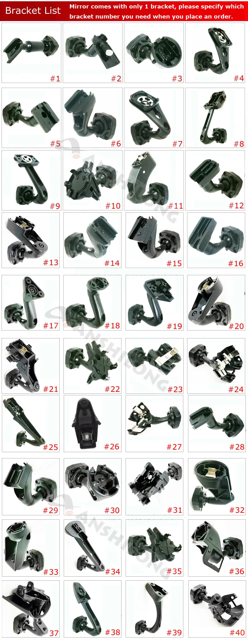 Buyer Please Note: Before you purchase this bracket, please make sure your mirror bracket socket is the same as one of our these brackets, and please leave message for us which bracket number you need. This price is for 1 bracket. These Brackets are only suitable for the mirror which has 30mm x 30mm screws distance: Please check your mirror screws distance first before you place an order: