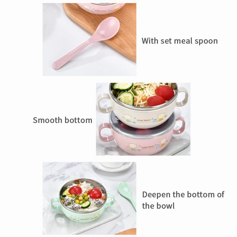 Baby Feeding Bowl Stainless Steel Insulation Bowl Spoon Set Children Tableware Cartoon Printed Children Food Bowl BPA Free 300ml