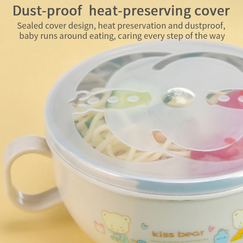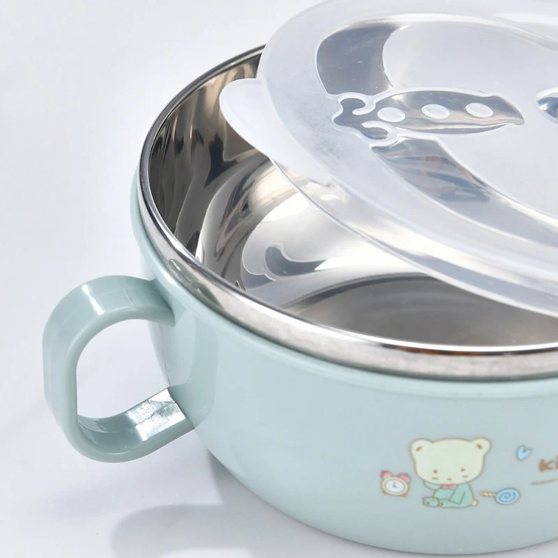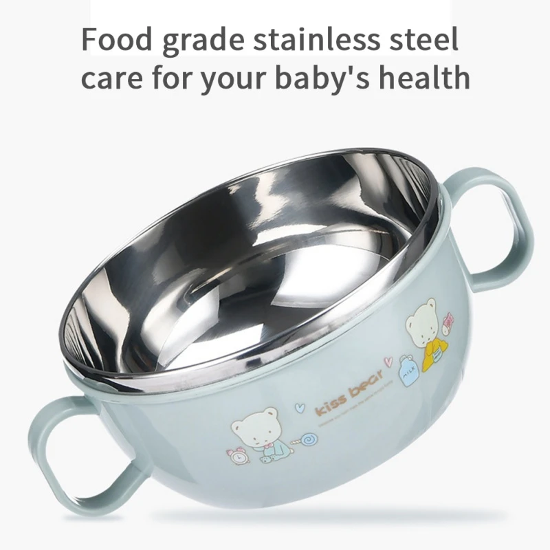 Baby Feeding Bowl Stainless Steel Insulation Bowl Spoon Set Children Tableware Cartoon Printed Children Food Bowl BPA Free 300ml
