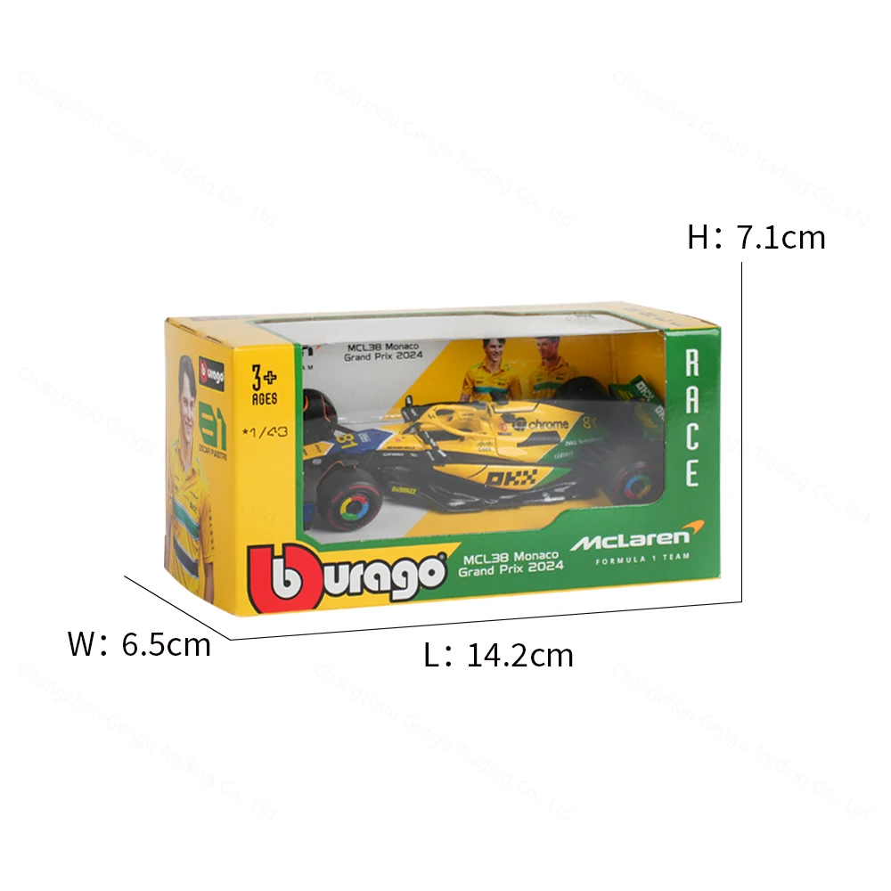 Bburago 1:43 2024 Mclaren MCL38 Miami Monaco F1 Formula Car Die Cast Vehicles Collectible Model Racing Toys