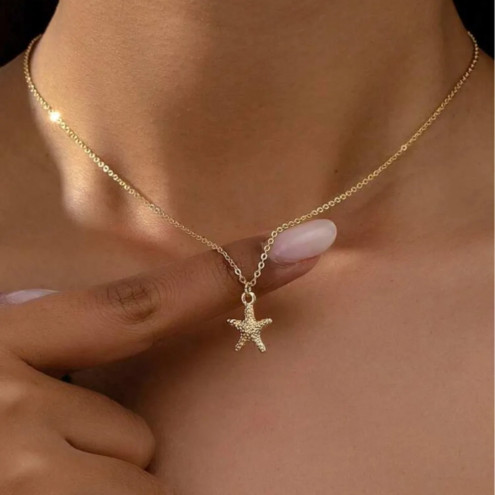 Bohemian Gold Starfish Pendant Necklace For Women Trendy Summer Beach Choker Chains Neck Jewelry Accessories Travel Party Gift