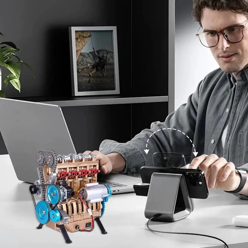 Enhance the decor of your space with this handmade 4-cylinder/8-cylinder resin car engine model. Perfect for various rooms including offices, study rooms, living rooms, and bedrooms, this unique piece adds a touch of cool mechanical style wherever it's placed.