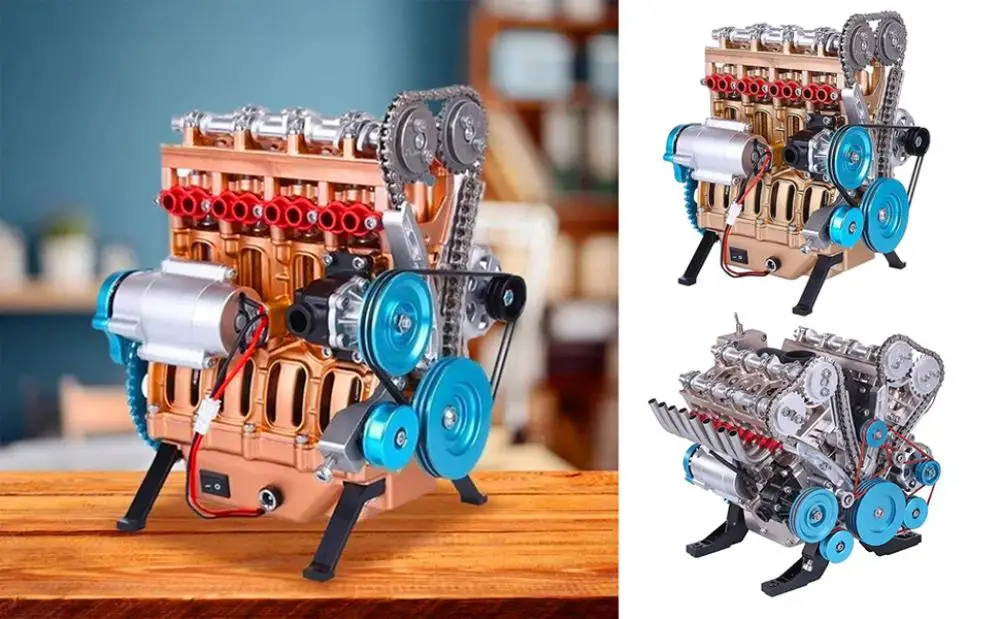 Cylinder Car Engine Model Resin V8 Engine Model Handmade 4-Cylinder Car Engine Model Desktop Engine Block Ornament Gift for Car Enthusiasts
