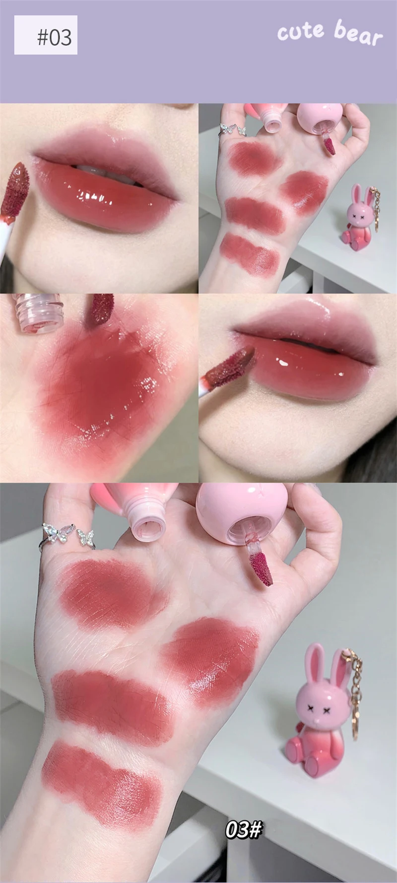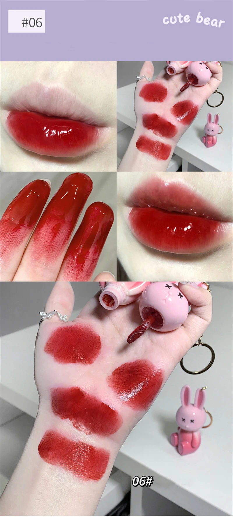Cute Rabbit Mirror Lip Glaze Keychain Lipstick Waterproof Lip Gloss Long Lasting Non-stick Cup Women Lip Glaze Cosmetic 6 Colors