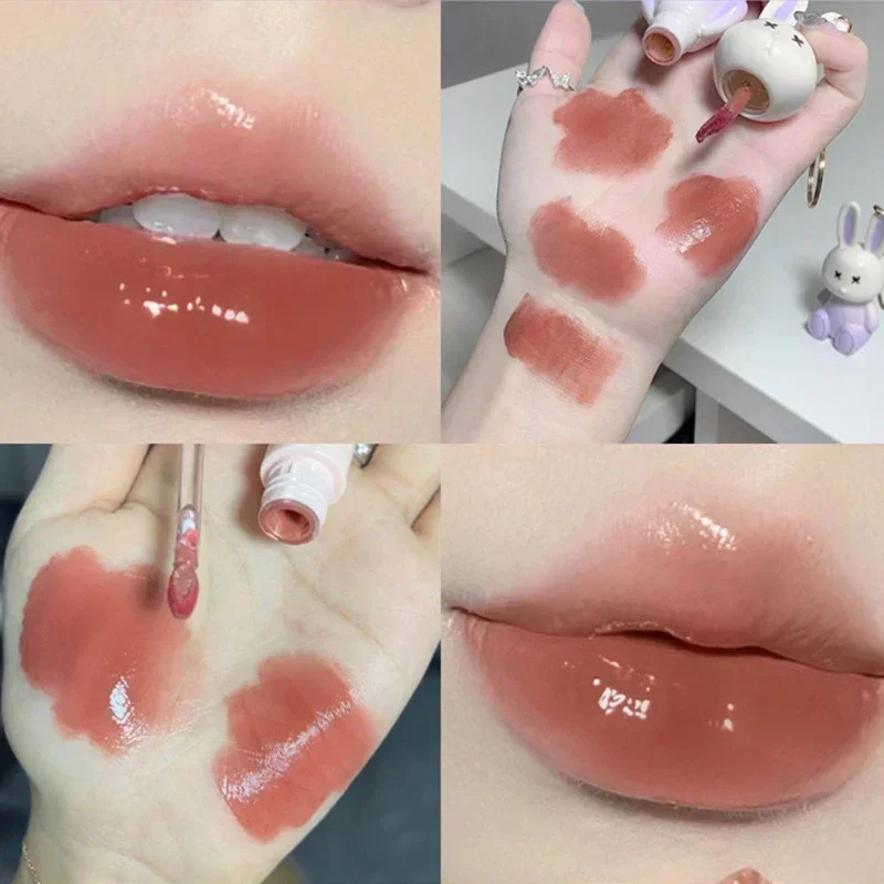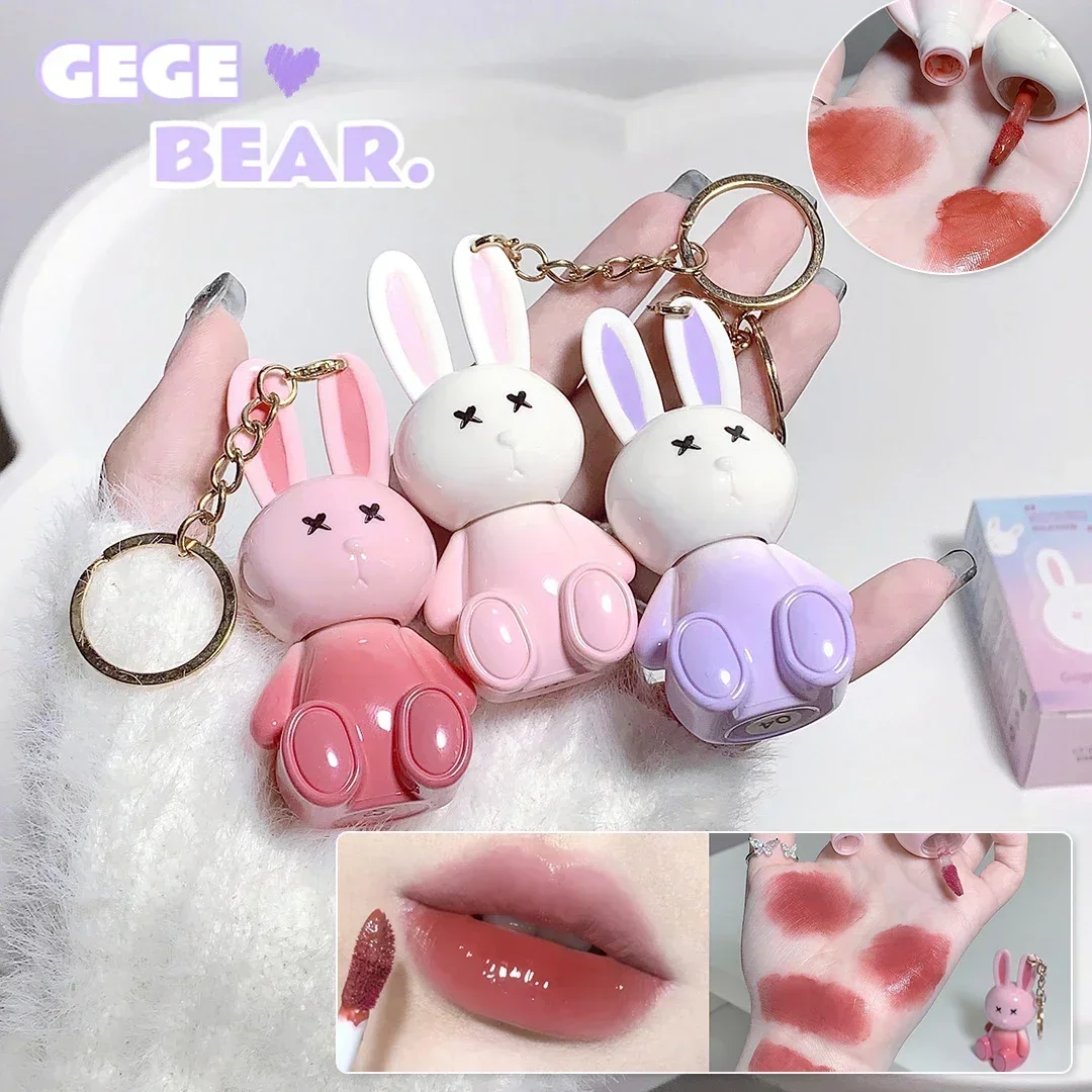 Cute Rabbit Mirror Lip Glaze Keychain Lipstick Waterproof Lip Gloss Long Lasting Non-stick Cup Women Lip Glaze Cosmetic 6 Colors