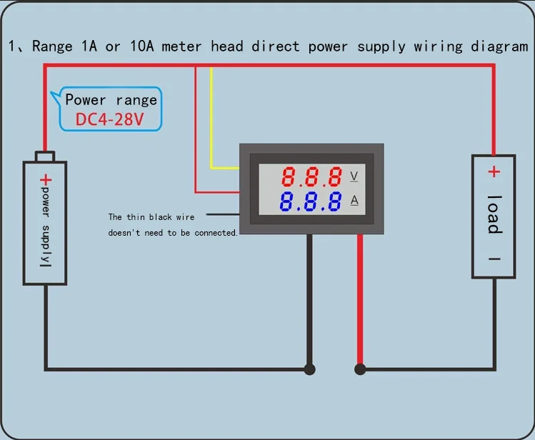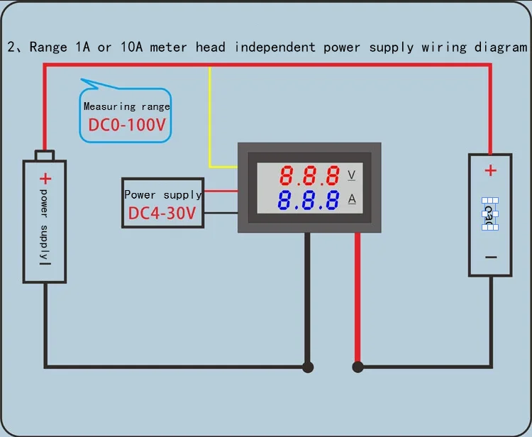 2. The power supply range of this head is 4~30V (beyond the range will burn out), the measurement range is 0~100V.