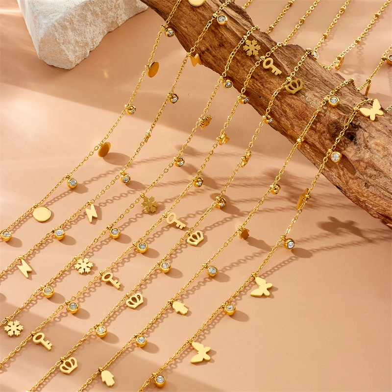 DIEYURO 316L Stainless Steel Golden Snowflake Butterfly Crown Key Lightning Zircon Necklace Bracelet Set Trend Jewelry Sets Gift