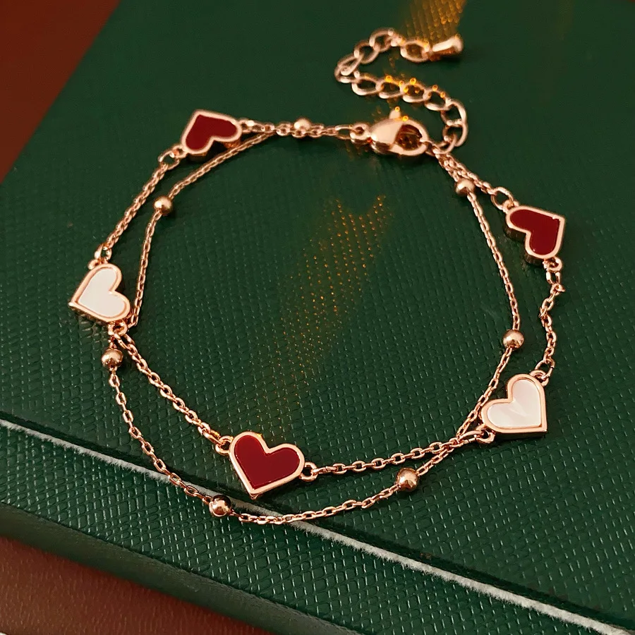 Double Layer Heart Love Chains Bracelets for Women Girl New Stainless Trendy Fritillary Bangles Birthday Gift Party Jewelry C1