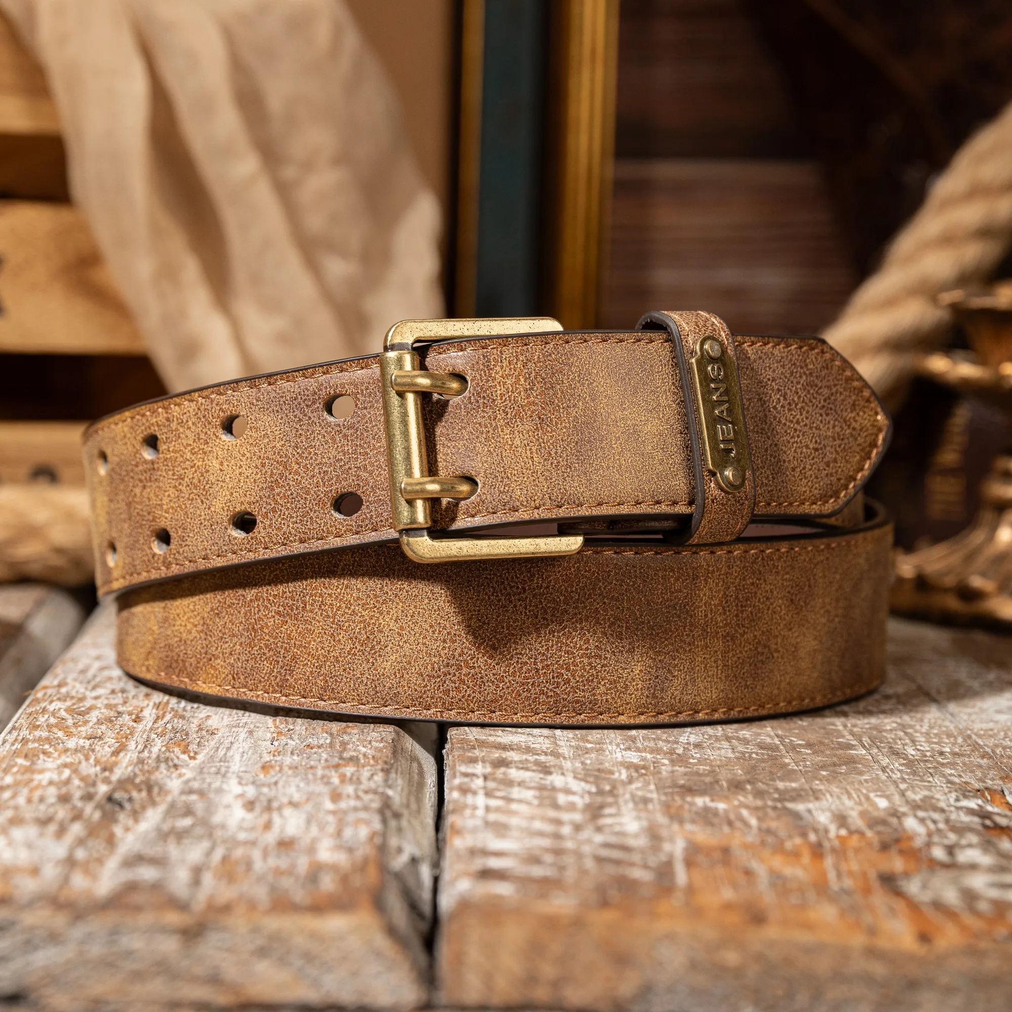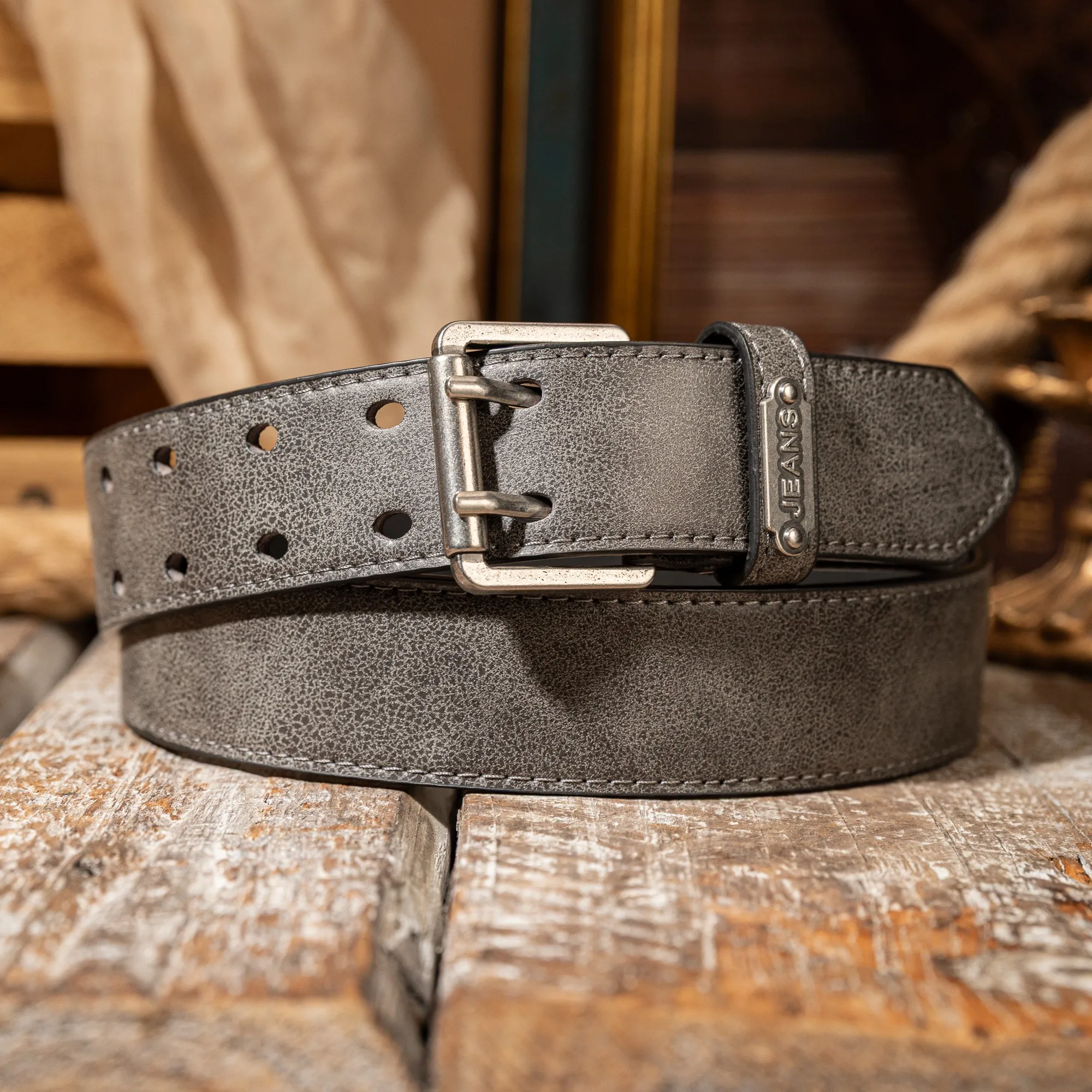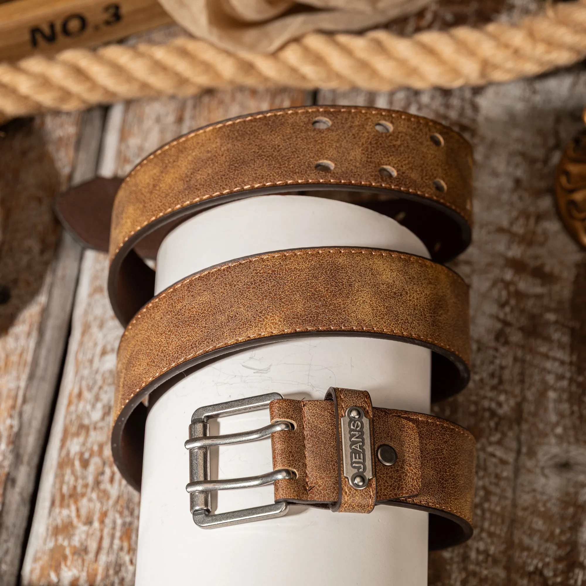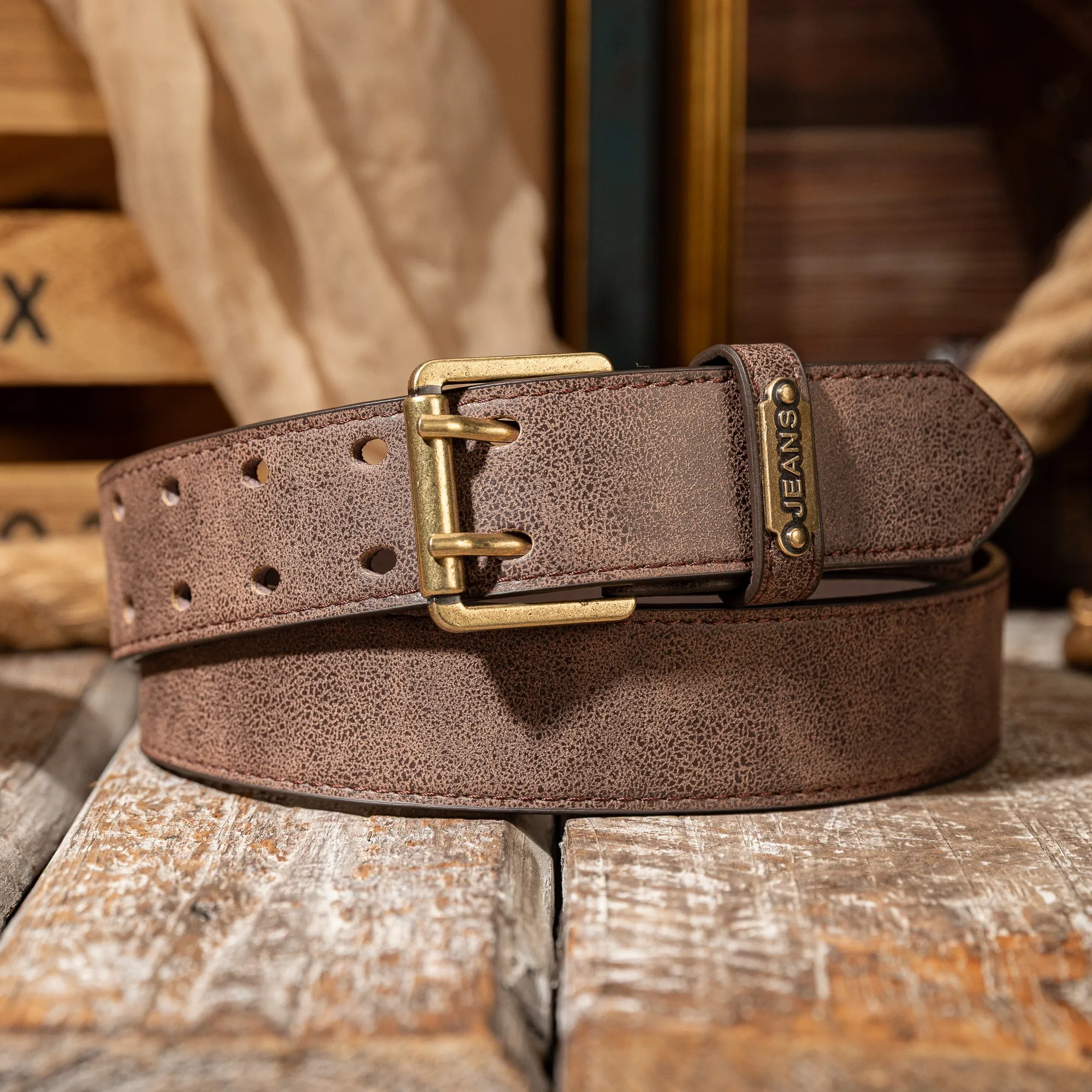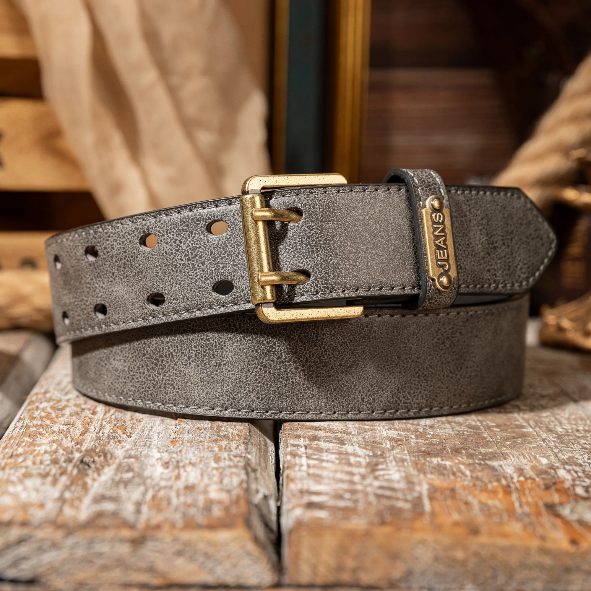 Double-row hole pin buckle letter ring, retro and aged PU leather unisex belt