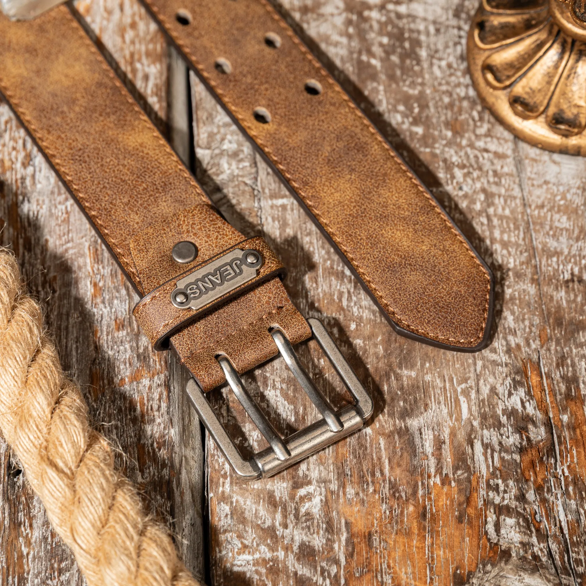 Be the first to review “Double-row hole pin buckle letter ring, retro and aged PU leather unisex belt”