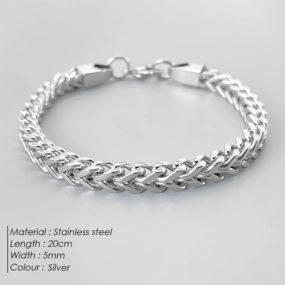 ELANDIS Width 5MM Double Cuban Chain Stainless Steel Metal Clasp Bracelets, Punk Men’s Bangles Length 20cm48 Hour Shipping
