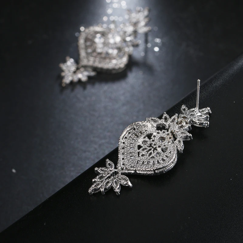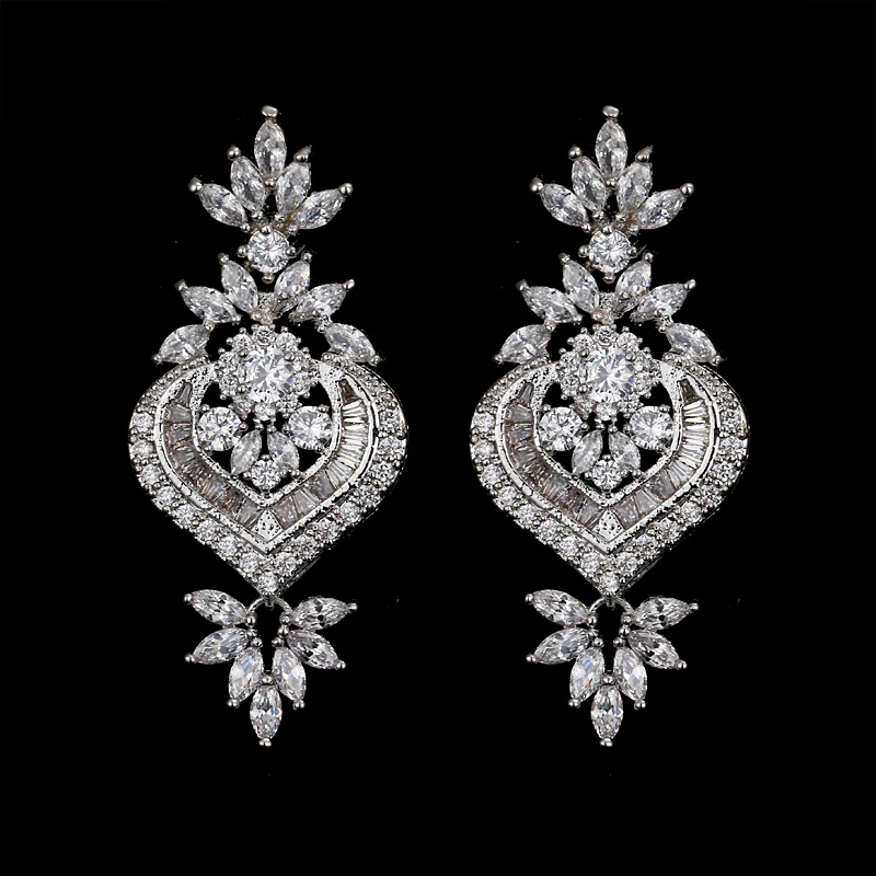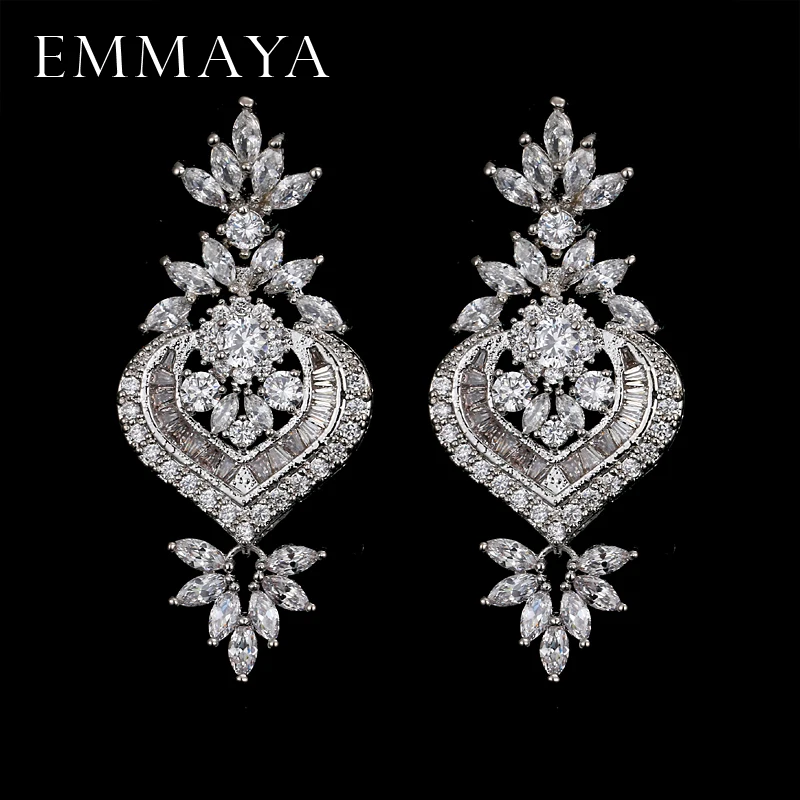 EMMAYA New Arrival Luxury Big Long Flower Pendant Drop Earrings With Shining CZ Brincos Bridal Women Wedding Party Jewelry