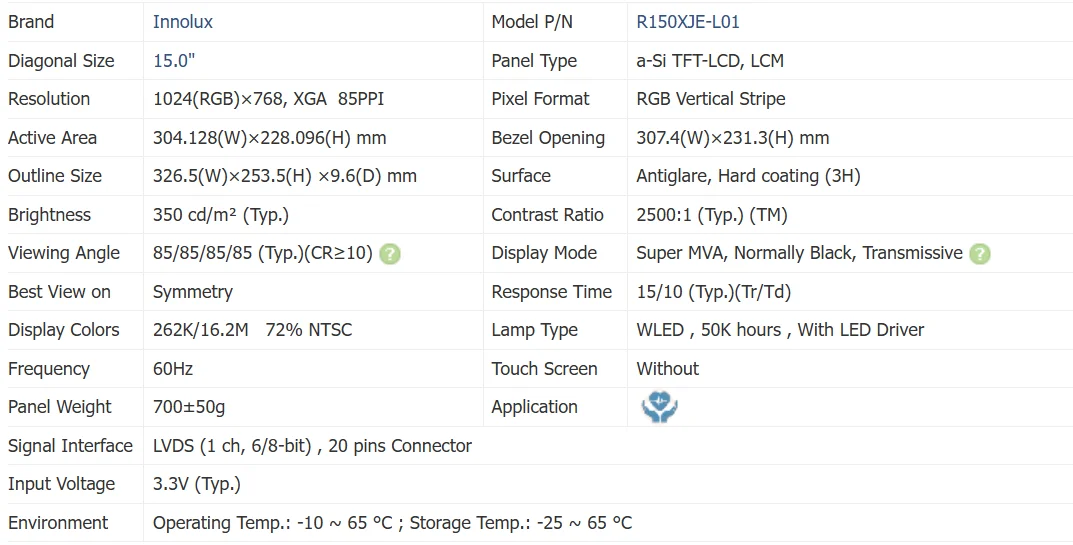 G150XNE-L01 ,G150XNE-L03 ,R150XJE-L01 |