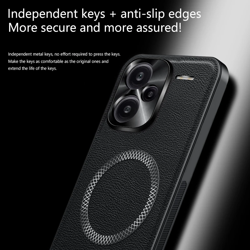 For Redmi Note 13 Pro+ Pro Plus Case Magnetic Elegant Leather Wear-Resistant Lens Fully Covered Non-Slip Grip Edge Cover Shell