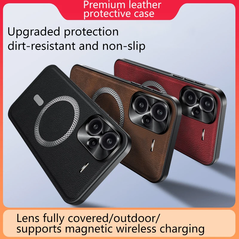 For Redmi Note 13 Pro+ 5G Case Magnetic Elegant Leather Stain-Resistant Wear-Resistant Lens Fully Covered Non-Slip Grip Edge Cover Shell