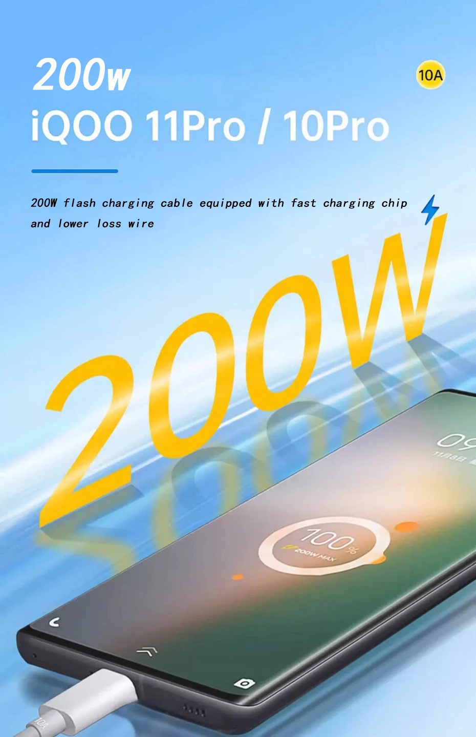 For VIVO 200W MAX SUPERDART Fast Charger Cable USB Type C TO C 10A For vivo iQOO 10 11 Pro