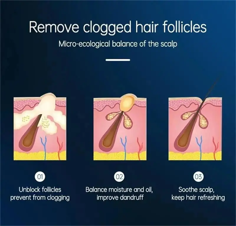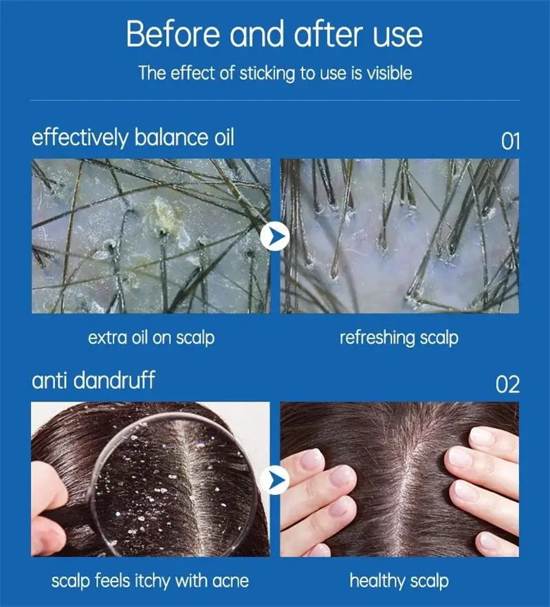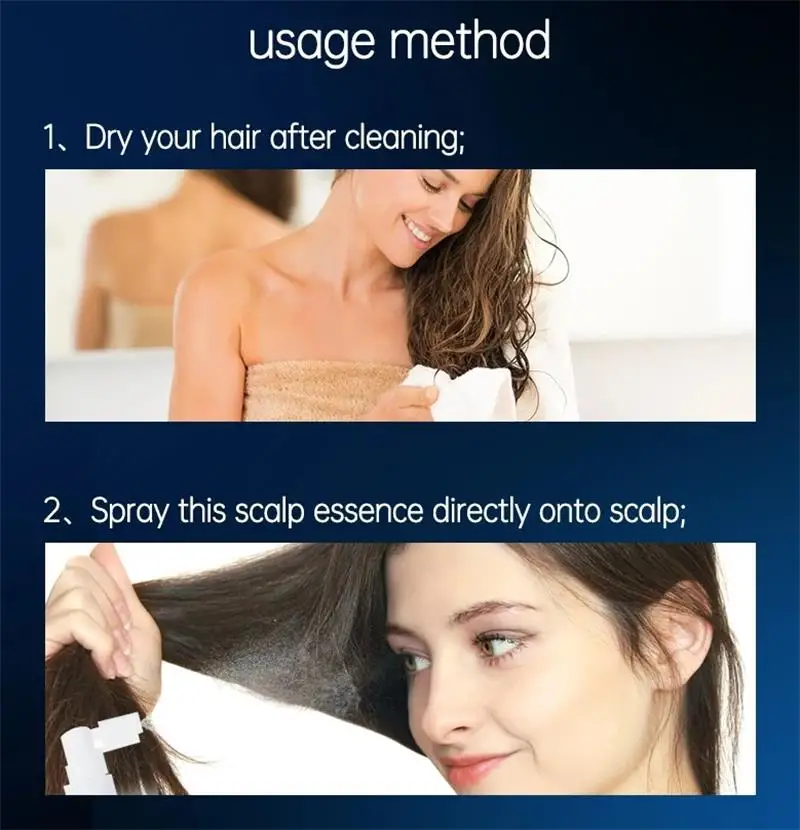 ▶Our scalp care essence is designed to protect the scalp and keep it healthy. Spray liquid contains plant extracts and other nutrients, which can dredge hair follicles, prevent clogging, adjust water oil balance, remove dandruff, relieve scalp, relieve itching and refresh. It can prevent hair loss and dry hair damage, strengthen hair roots, and have moisturizing effects.