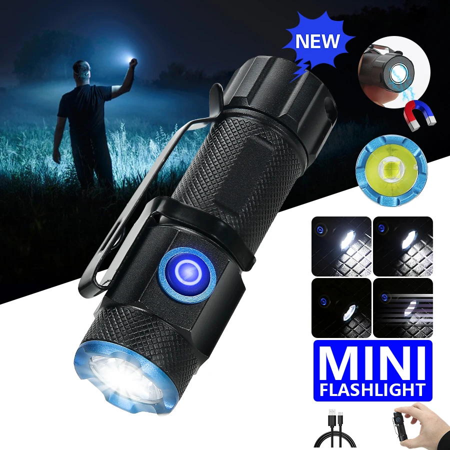 High Power Rechargeable Flashlight,5 Modes,Powerful Super Bright Mini Torch,Emergency Spotlight With Pen Clip Tail Magnet