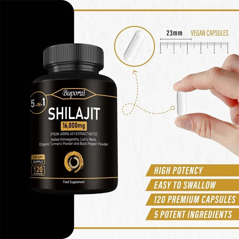 - Ingredients: Shilajit extract, ashwagandha, turmeric, lions mane, black pepper