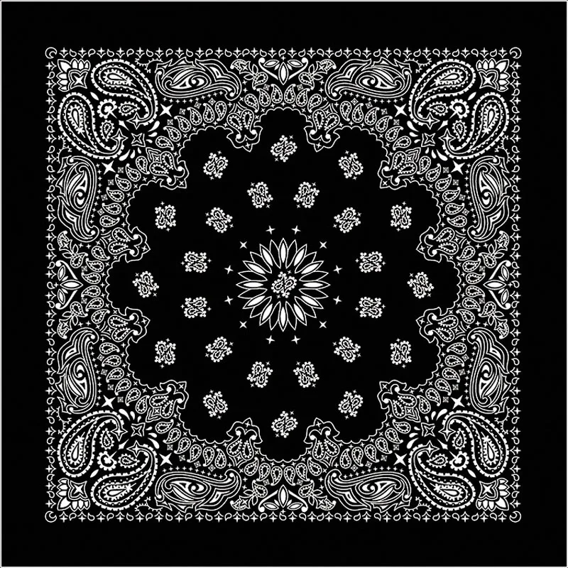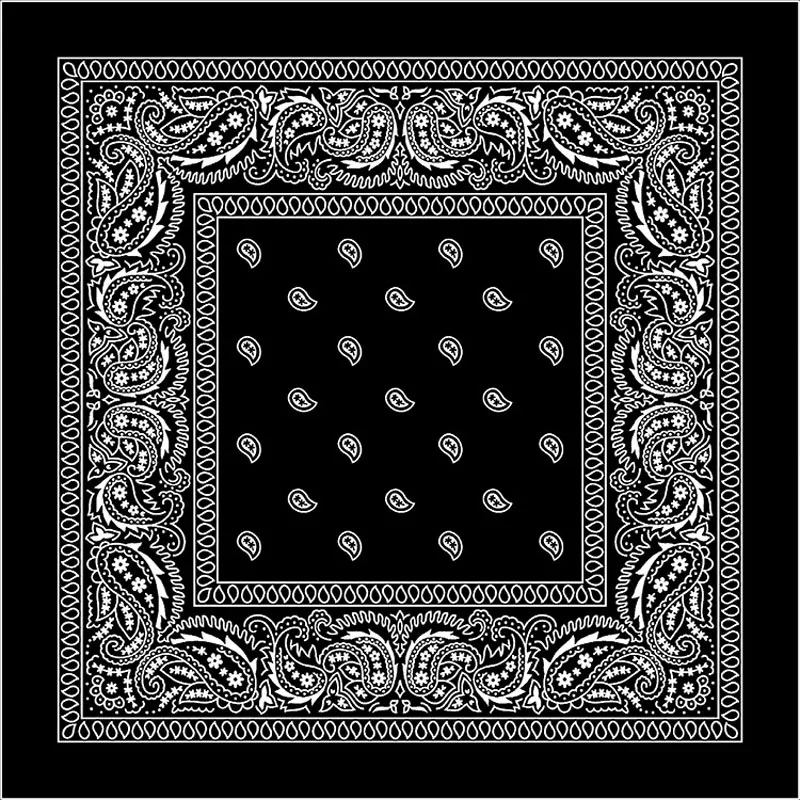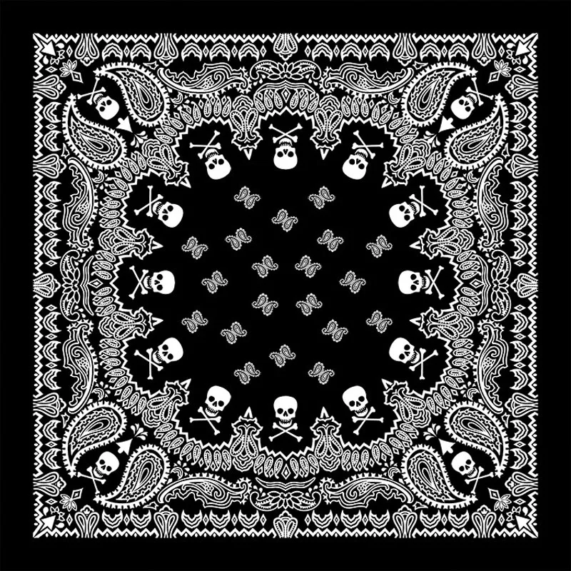 Hip Hop Ice Silk Skull Bandana, Square Scarf, Black and White Paisley, Multifunction Headband for Men and Women, New, 58x58cm